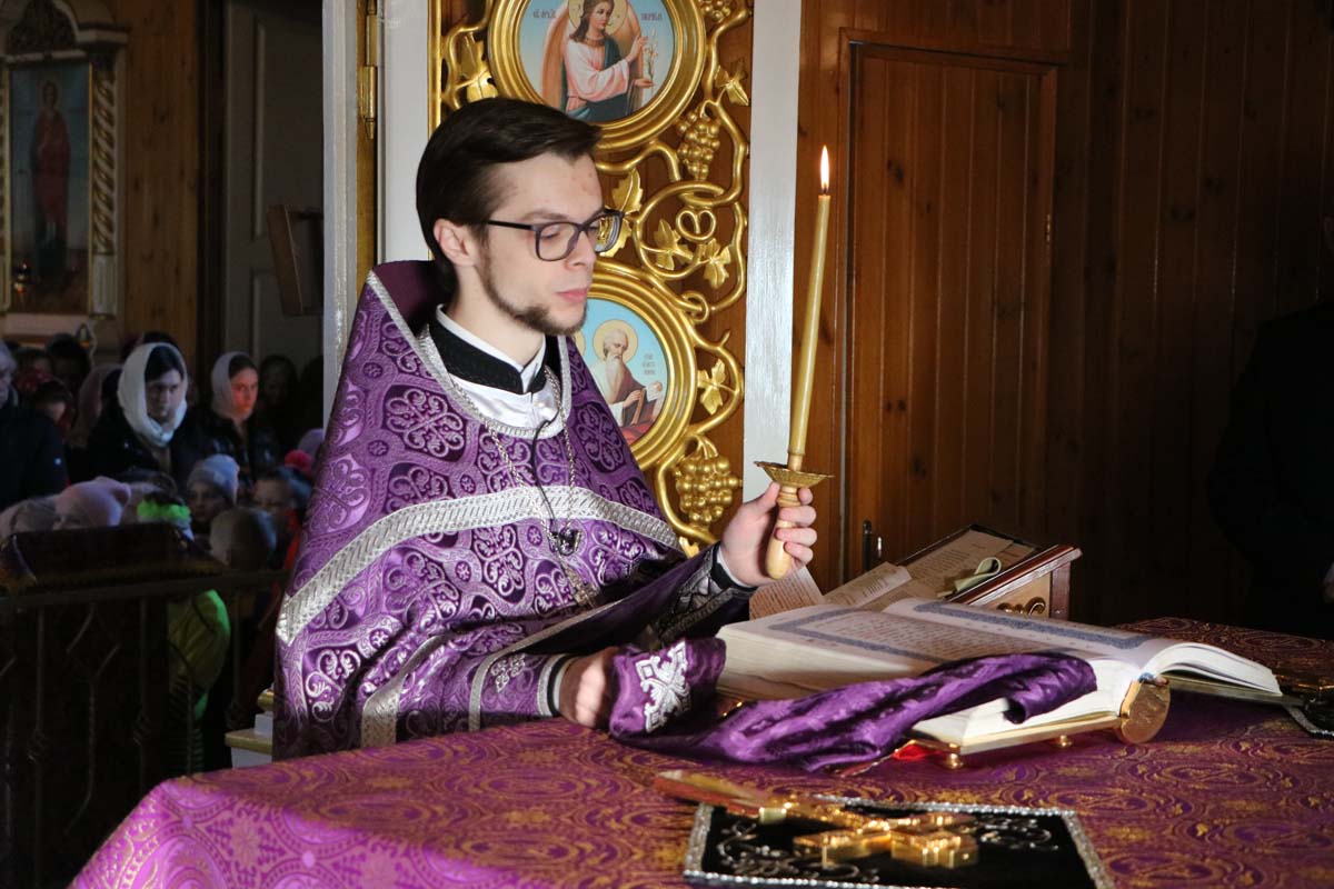 Вечером в храме была совершена вечерня с акафистом Страстям Христовым, чтение Евангелия о страданиях и смерти Христа Спасителя в изложении евангелиста Матфея и молитва о восстановлении мира. Богослужебные песнопения исполнил молодежный хор «Покров» под управлением Марковской Н.В. По окончании богослужения священник Максим Волк обратился к молящимся со словом назидания.