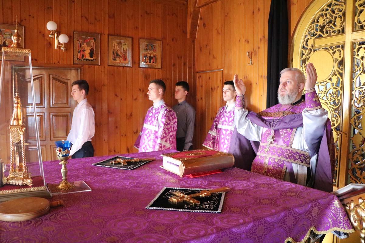 Богослужебные песнопения исполнил молодежный хор «Покров» под управлением Марковской Н.В. По окончании богослужения священник Максим Волк обратился к молящимся со словом назидания.