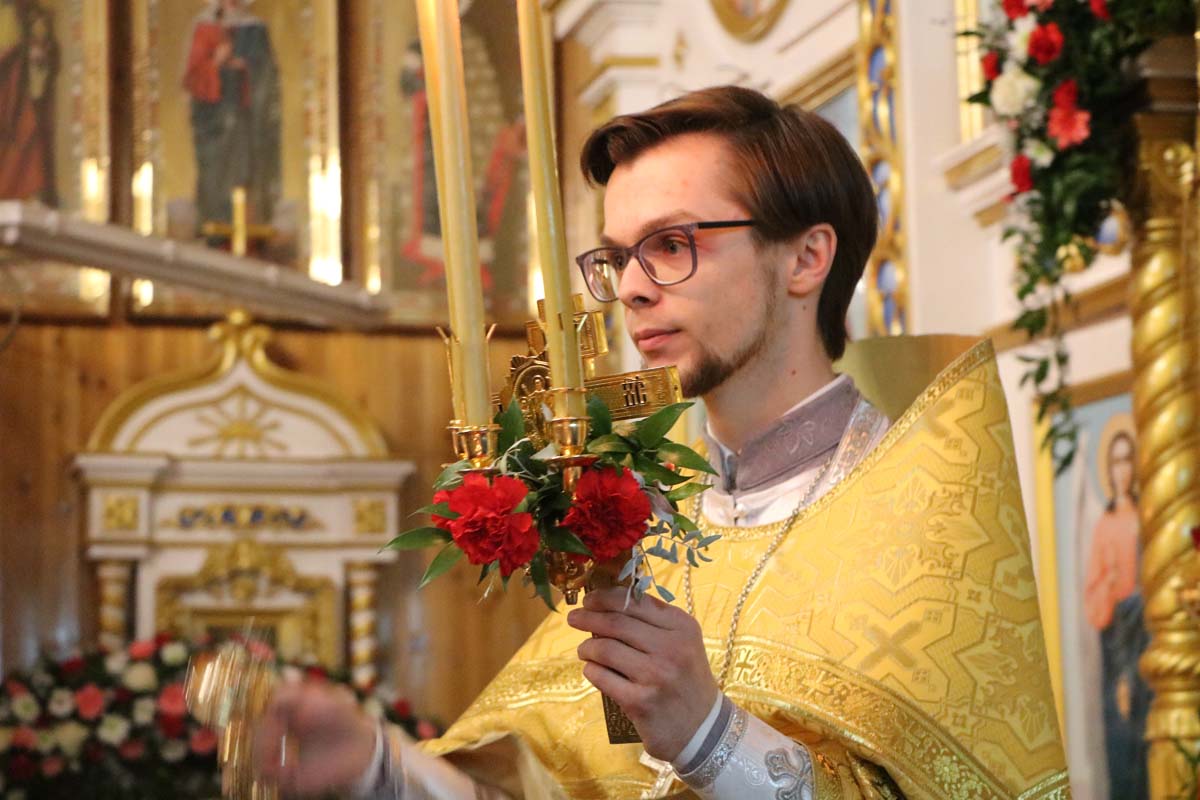 На сугубой ектении были вознесены прошения о даровании мира и благополучия белорусскому народу, а также о прекращении распространения губительного поветрия. После сугубой ектении была вознесена молитва о восстановлении мира. Богослужебные песнопения исполнил хор под управлением Петрусевич Е.В. После заамвонной молитвы было совершено освящение артоса и прочитаны молитвы на освящение пасхальной снеди.