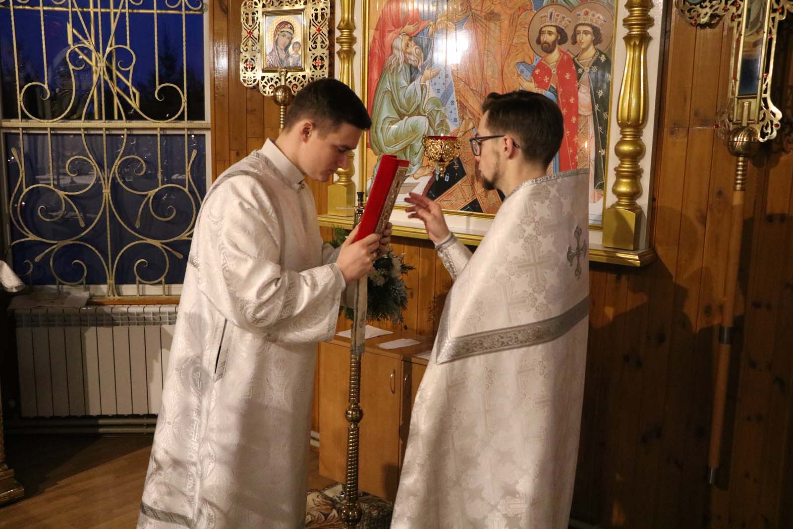 09 января священник Максим Волк совершил Божественную литургию. После чтения Евангелия было оглашено Рождественское послание архиепископа Брестского и Кобринского Иоанна архипастырям, пастырям, диаконам, монашествующим и всем верным чадам Белорусской Православной Церкви. На сугубой ектении были вознесены прошения о даровании мира и благополучия белорусскому народу, а также о прекращении распространения губительного поветрия. После сугубой ектении была вознесена молитва о восстановлении мира. Богослужебные песнопения исполнил хор под управлением Петрусевич Е.В. По окончании Божественной литургии был совершен молебен архидиакону Стефану и панихида. В завершение богослужения протоиерей Сергий Петрусевич обратился к молящимся со словами поздравления с праздником Рождества Христова.