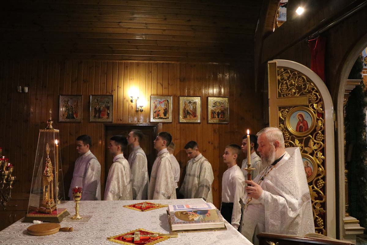 15 января протоиерей Сергий Петрусевич совершил Божественную литургию. После чтения Евангелия священнослужитель обратился к молящимся с проповедью о человеческой и Божественной природе Иисуса Христа. На сугубой ектении были вознесены прошения о даровании мира и благополучия белорусскому народу, а также о прекращении распространения губительного поветрия. После сугубой ектении была вознесена молитва о восстановлении мира.