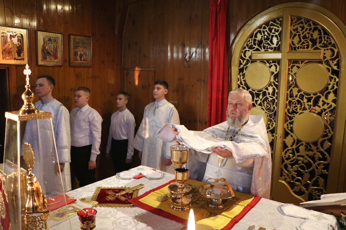 Богослужебные песнопения исполнил хор под управлением Петрусевич Е.В. По окончании Божественной литургии был совершен молебен и освящение хлеба в память прп. Серафима Саровского. Вечером в храме была совершена вечерня с акафистом пред иконой Божией «Неупиваемая Чаша». По окончании богослужения священник Максим Волк обратился к молящимся со словом назидания.