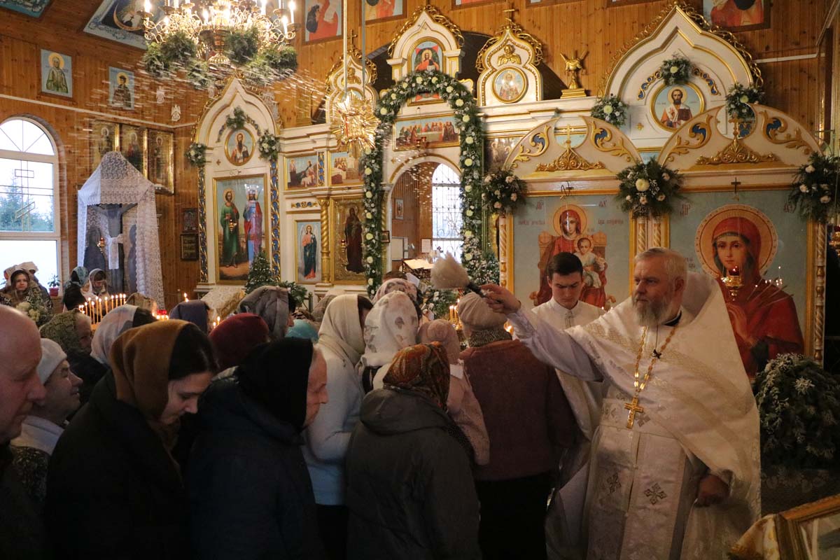 По окончании богослужения настоятель храма поздравил молящихся с праздником, окропил каждого святой водой и вручил информационные буклеты о празднике Крещения Господня (Богоявления), подготовленные Синодальным миссионерским отделом Белорусской Православной Церкви. Далее было совершено окропление святой водой строений, расположенных на территории храма.