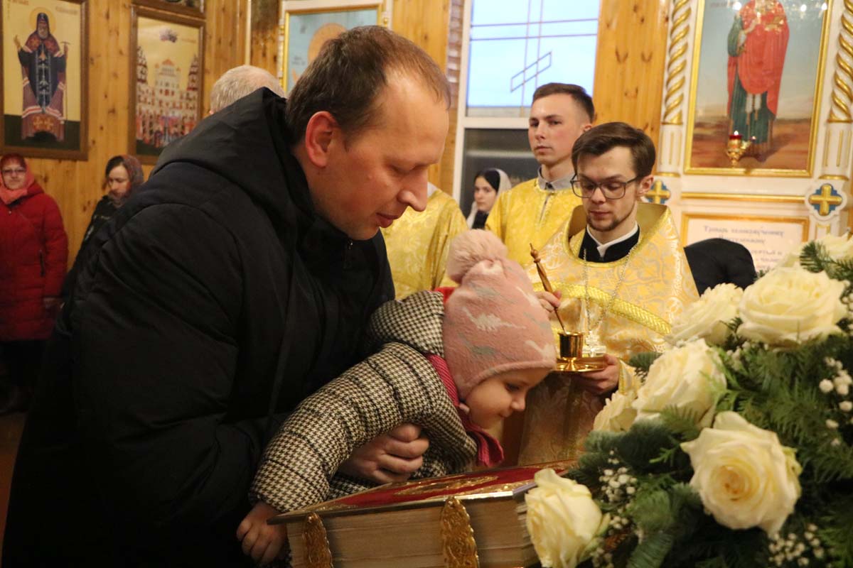 05 февраля священник Максим Волк совершил Божественную литургию. После чтения Евангелия священнослужитель обратился к молящимся с проповедью о смирении и гордости (Лк.18, 10-14). На сугубой ектении были вознесены прошения о даровании мира и благополучия белорусскому народу, а также о прекращении распространения губительного поветрия. После сугубой ектении была вознесена молитва о восстановлении мира.