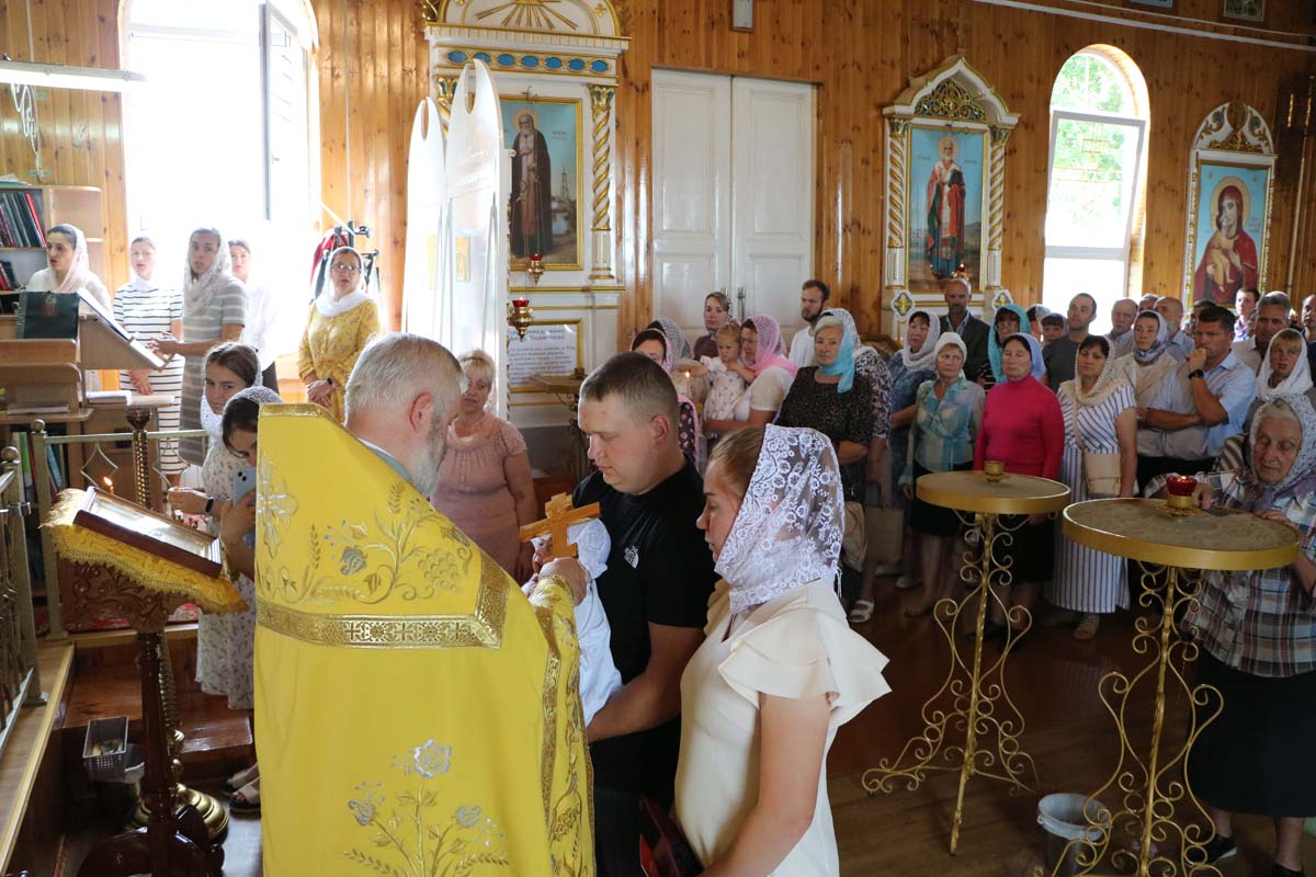 30 июля протоиерей Сергий Петрусевич совершил Божественную литургию. После чтения Евангелия священнослужитель обратился к молящимся с проповедью о хлебе насущном (Мф. 14, 14–22). На сугубой ектении были вознесены прошения о даровании мира и благополучия белорусскому народу, а также о прекращении распространения губительного поветрия. После сугубой ектении была вознесена молитва о восстановлении мира. Богослужебные песнопения исполнил хор под управлением Петрусевич Е.В. Во время пения запричастного стиха был совершен Чин воцерковления младенца. По окончании Божественной литургии был совершен молебен и панихида. В завершение богослужения настоятель храма приветствовал родителей с младенца, над которыми в этот день совершался Чин воцерковления.
