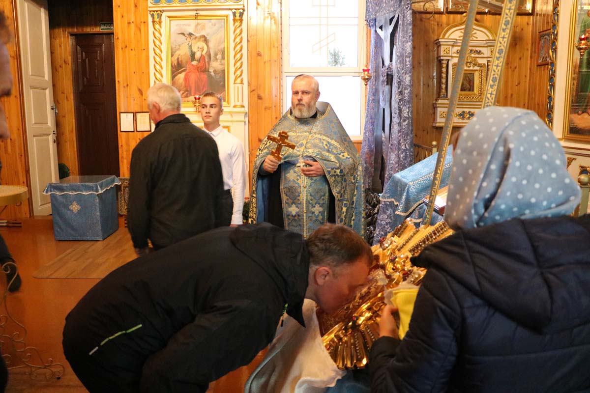 15 октября священник Максим Волк совершил Божественную литургию. После чтения Евангелия священнослужитель обратился к молящимся с проповедью о нравственном законе Евангелия (Лк.6, 31-36). На сугубой ектении были вознесены прошения о даровании мира и благополучия белорусскому народу, а также о прекращении распространения губительного поветрия. После сугубой ектении была вознесена молитва о восстановлении мира. Во время пения запричастного стиха был совершен Чин воцерковления младенца. Богослужебные песнопения исполнил хор под управлением Петрусевич Е.В. По окончании Божественной литургии был совершен молебен и панихида. В завершение богослужения настоятель храма приветствовал родителей с младенцем, над которым в этот день совершался Чин воцерковления. Вечером в храме была совершена вечерня с акафистом пред иконой Божией Матери «Неупиваемая Чаша». Богослужебные песнопения исполнил хор управлением Петрусевич Е.В. По окончании богослужения протоиерей Сергий Петрусевич обратился к молящимся со словом назидания.