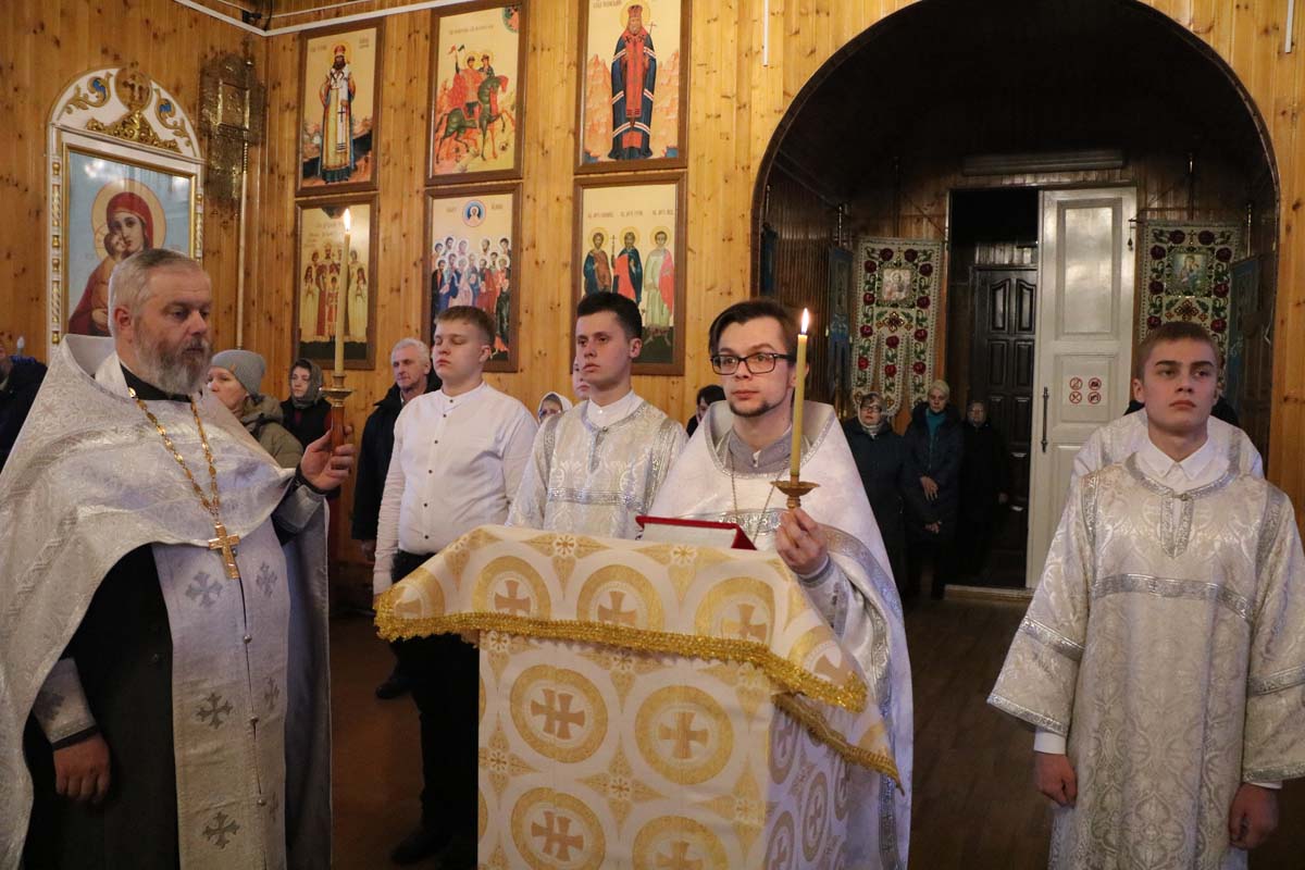 21 января протоиерей Сергий Петрусевич совершил Божественную литургию. После чтения Евангелия священнослужитель обратился к молящимся с проповедью об искушении диаволом Христа в пустыни. Во время богослужения были вознесены сугубые молитвенные прошения о восстановлении мира. Богослужебные песнопения исполнил хор под управлением Петрусевич Е.В. Во время пения запричастного стиха был совершен Чин воцерковления младенца. По окончании Божественной литургии был совершен молебен и панихида. В завершение богослужения настоятель храма приветствовал родителей с младенцем, над которыми в этот день совершался Чин воцерковления.