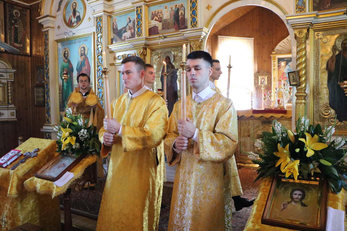 12 июля священник Максим Волк совершил Божественную литургию. После чтения Евангелия священнослужитель обратился к молящимся с проповедью об апостольском служении Петра и Павла. После сугубой ектении была вознесена молитва о восстановлении мира. Богослужебные песнопения исполнил хор храма под управлением Петрусевич Е.В. По окончании Божественной литургии был совершен молебен и панихида, а также заупокойная лития на месте погребения настоятеля храма Покрова Пресвятой Богородицы г. Жабинка с 1939 по 1948 гг. протоиерея Петра Котара. В завершение богослужения священнослужитель поздравил с днем Ангела именинников, нареченных в Таинстве Крещения в честь апостолов Петра и Павла.