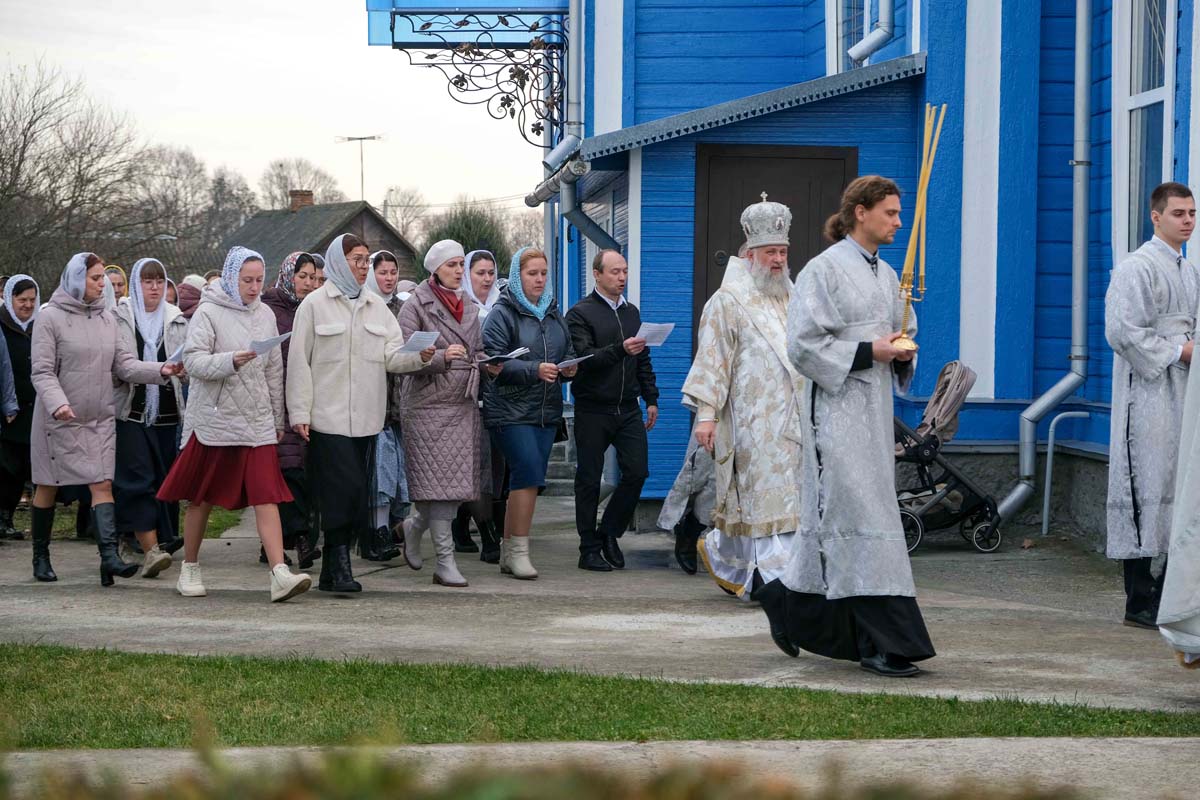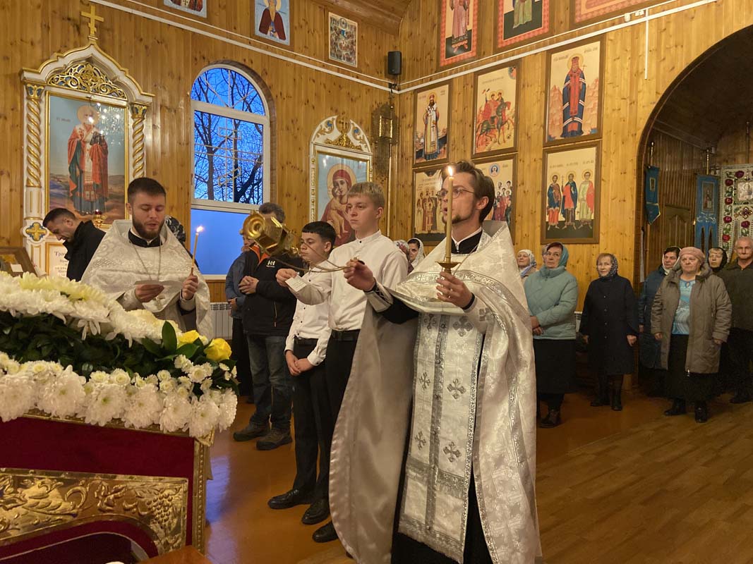 13 ноября 2025 года, в канун дня памяти святых бессребреников и чудотворцев Космы и Дамиана Ассийских, клирик храма Покрова Пресвятой Богородицы в г. Жабинка священник Максим Волк в сослужение настоятеля храма святого великомученика Никиты в г. Жабинка священника Михаила Колодяжного, клирика храма святителя Кирилла Туровского в г. Жабинка священника Иакова Андросюка совершил полиелейное богослужение в храме Покрова Пресвятой Богородицы г. Жабинка. Богослужебные песнопения исполнил хор храма под управлением Волк М.И.