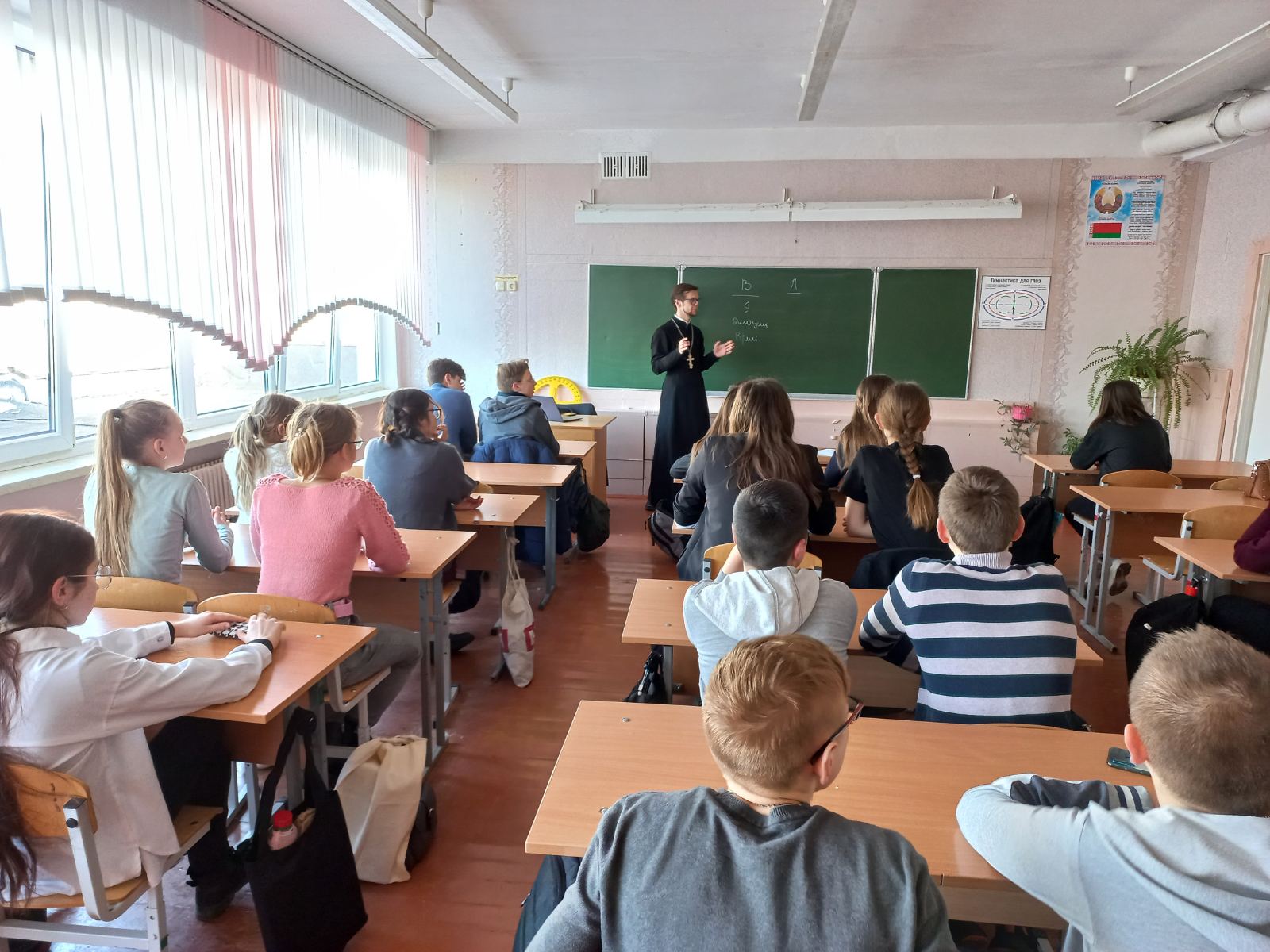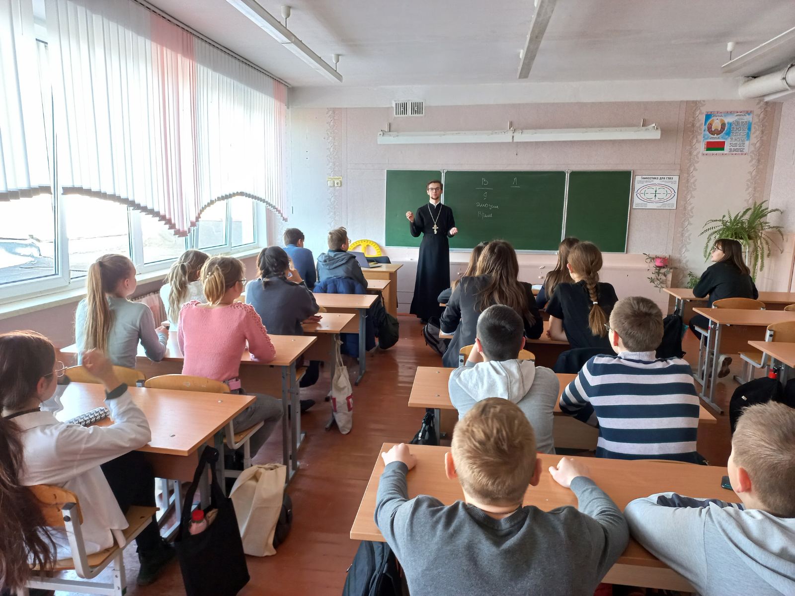 17 марта 2022 года состоялись очередные встречи клирика храма Покрова Пресвятой Богородицы в г. Жабинка священника Максима Волка с учащимися 7 «А» класса ГУО «Средняя школа №3 г. Жабинки» в рамках цикла бесед «Основы православной культуры». Данная встреча была приурочена ко Дню православной книги.