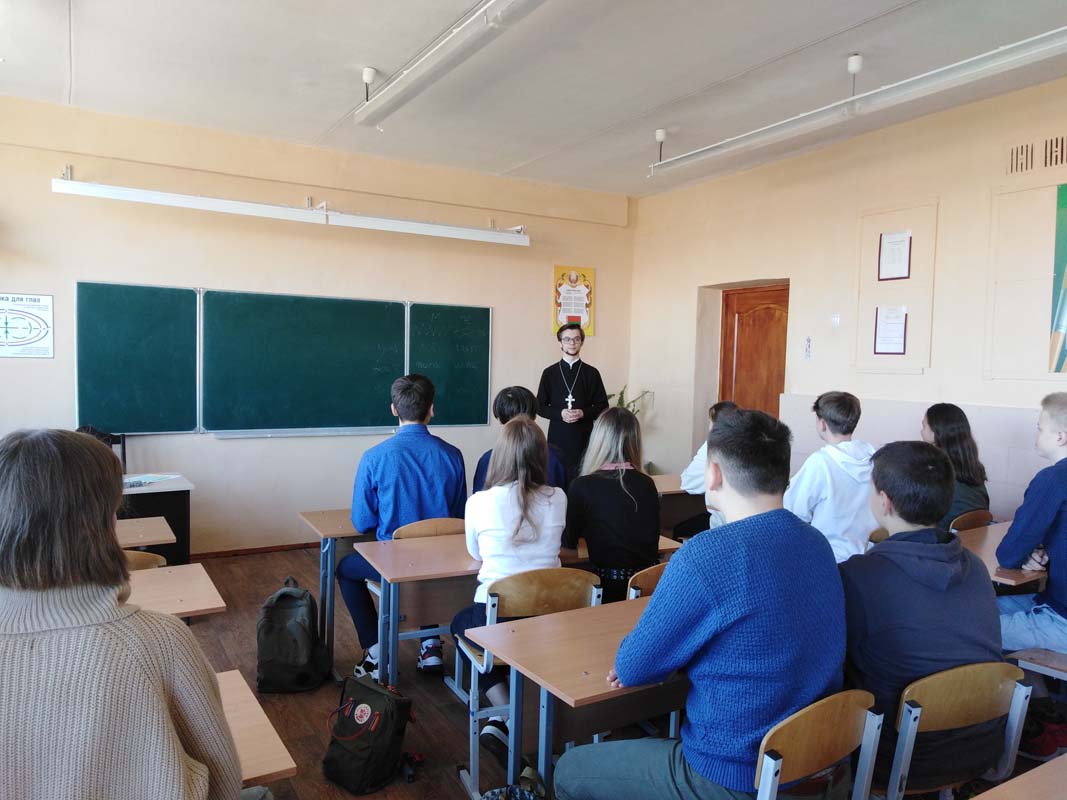 14 апреля 2022 года состоялась очередная встреча клирика храма Покрова Пресвятой Богородицы в г. Жабинка священника Максима Волка с учащимися 7 «А» и 7 «Б» класса ГУО «Средняя школа №3 г. Жабинки» в рамках цикла бесед «Основы православной культуры». Тема беседы: «Тайна человеческой природы».