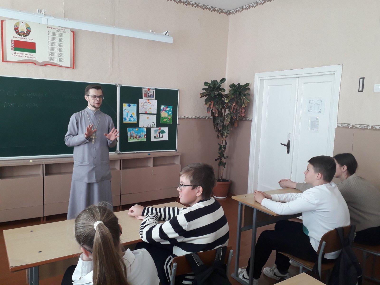16 мая 2022 года состоялась встреча клирика храма Покрова Пресвятой Богородицы в г. Жабинка священника Максима Волка с учащимися 7-х классов ГУО «Средняя школа №1 г. Жабинки», ГУО «Средняя школа №2 г. Жабинки», 6-х и 9-х классов ГУО «Средняя школа №3 г. Жабинки» в рамках единого урока, посвященного Дню семьи. Тема беседы: «Мужественность и женственность».