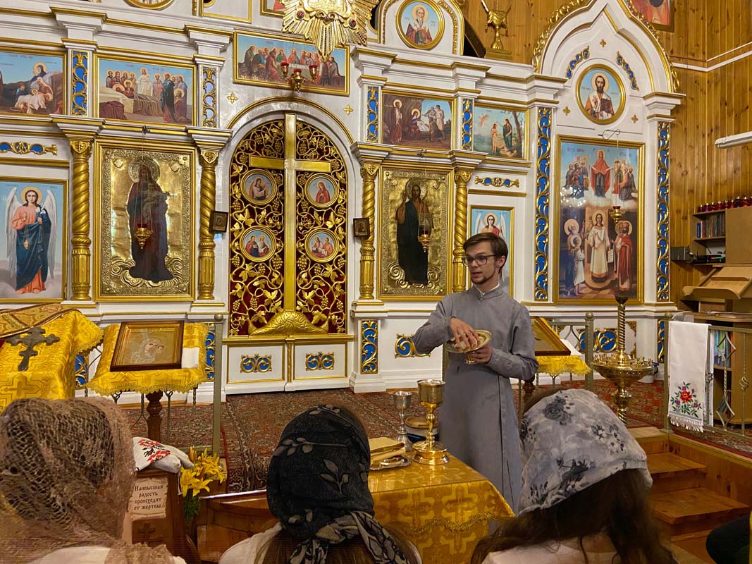 В начале беседы духовник молодежного объединения священник Максим Волк рассказал ребятам о евхаристических сосудах, использующихся для совершения первой части Божественной литургии — проскомидии, их символике и практическом значении. Священнослужитель показал, каким образом готовится для приношения агничная просфора, как вынимаются частички из служебных просфор в память о Божией Матери, святых, живых и усопших. Далее ребята узнали, каким образом совершается Анафора — центральное священнодействие Литургии, а так же традиции причащения Святыми Дарами духовенства и мирян в древности и в наши дни. Братчики имели уникальную возможность увидеть воочию всё то, что во время евхаристического священнодействия скрыто от глаз молящихся. Особое внимание отец Максим уделил важности поминовения близких именно на проскомидии, тесной связи Божественной литургии с Тайной Вечерей Спасителя, Его смертью на Голгофе и Воскресением из гроба.