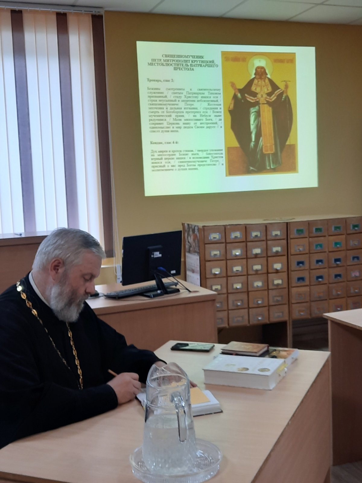 28 июля 2022 года состоялась очередная встреча слушателей школы православия «За советом к батюшке» с благочинным церквей Жабинковского округа протоиереем Сергием Петрусевичем. Бакун Н.Ф. рассказала о жизненном пути и исповедничестве местоблюстителя Патриаршего Местоблюстителя священномученика Петра (Полянского), митрополита Крутицкого. В продолжение изучения Божественной литургии протоиерей Сергий Петрусевич познакомил слушателей с прошениями сугубой ектении, ектении оглашенных и чинопоследованием Великого входа.