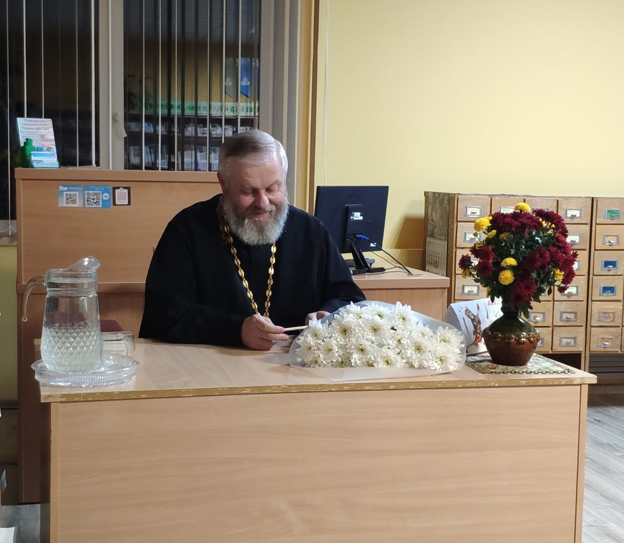 27 октября 2022 года состоялась очередная встреча слушателей школы православия «За советом к батюшке» с благочинным церквей Жабинковского округа протоиереем Сергием Петрусевичем. Бакун Н.Ф. рассказала о Первосвятительском служении в Русской Православной Церкви Святейшего Патриарха Пимена. В продолжение изучения Божественной литургии протоиерей Сергий Петрусевич познакомил слушателей с практикой Причащения в раннехристианских общинах и в современных условиях. Особое внимание было уделено вопросу Причащения младенцев. В завершение встречи Хандрико Г.Ф. от слушателей школы поздравила священнослужителя с прошедшим днем рождения и пожелала помощи Божией в пастырском служении.