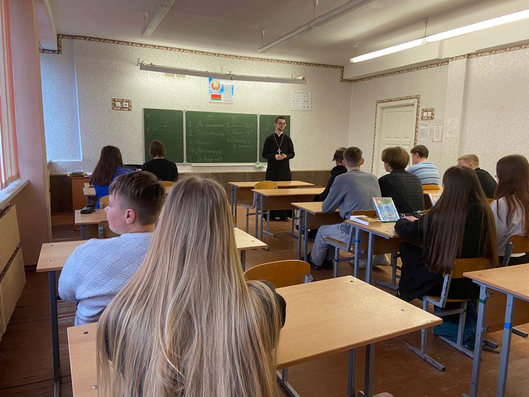 26, 27 и 31 января 2023 года состоялась очередная беседа клирика храма Покрова Пресвятой Богородицы в г. Жабинка священника Максима Волка с учащимися III ступени образования ГУО «Средняя школа №1 г. Жабинки» (10 «Б» класс), «Средняя школа №2 г. Жабинки» (11 класс), ГУО «Средняя школа №3 г. Жабинки» (10 «Б» класс), ГУО «Лицей г. Жабинки» (10 «А», 11 «Б» и 11 «В» классы), в рамках запланированного на 2022/2023 учебный год цикла бесед «О семье и браке».