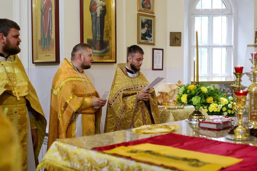 Богослужение возглавил настоятель прихода храма святой великомученицы Параскевы Пятницы в аг. Орехово протоиерей Анатолий Дударчук в сослужении настоятеля прихода храма Покрова Пресвятой Богородицы в д. Орепичи священника Василия Ищенко, настоятеля прихода храма святого равноапостольного князя Владимира в д. Чижевщина священника Александра Сытина, настоятеля прихода храма Успения Пресвятой Богородицы в д. Бульково священника Петра Дударчука, настоятеля храма святого великомученика Никиты в г. Жабинка священника Михаила Колодяжного, клирика храма Покрова Пресвятой Богородицы в г. Жабинка священника Максима Волка.