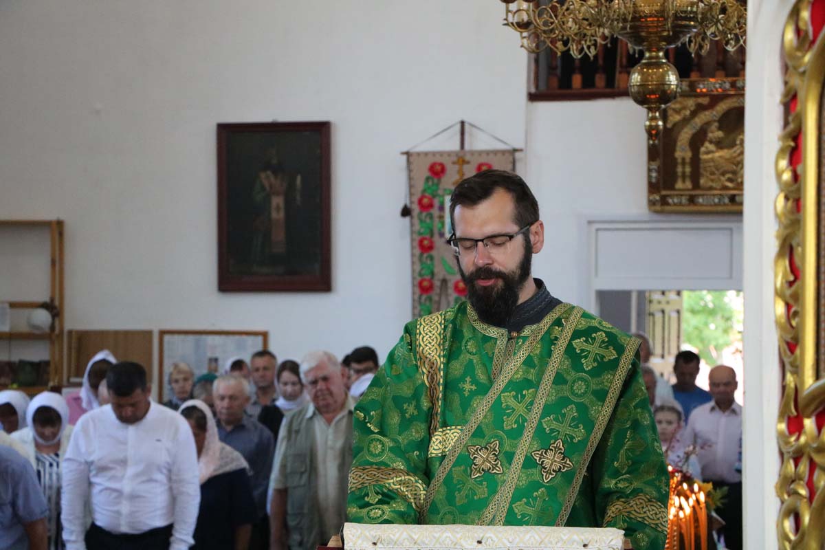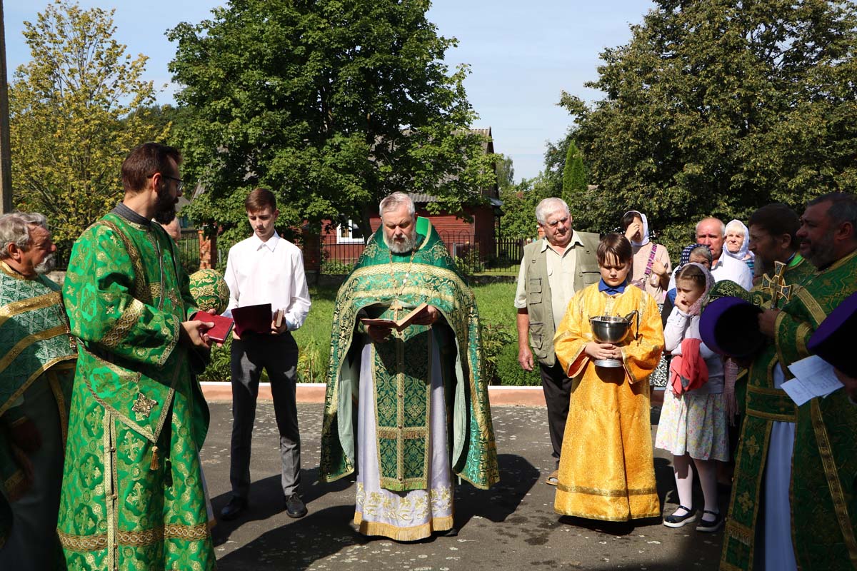 На сугубой ектении были вознесены прошения о даровании мира и благополучия белорусскому народу, а также о прекращении распространения губительного поветрия. После сугубой ектении была вознесена молитва о восстановлении мира. На заупокойной ектении были вознесены молитвы о почивших настоятелях, причте, прихожанах храма, а также была совершена молитва об упокоении «рабов Божиих православных христиан, вождей и воинов на поле брани за веру и Отечество в Первой мировой войне живот свой положивших» (1 августа – день памяти воинов, погибших в Первой мировой войне (1914–1918годов).