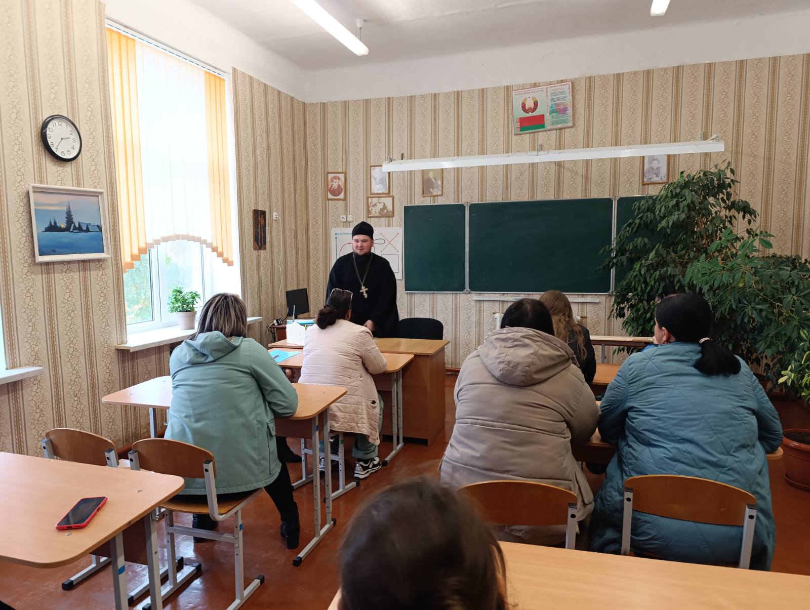 14 октября 2025 года настоятель храма Вознесения Господня в д. Огородники священник Владимир Кондращук принял участие в общешкольном родительском собрании ГУО «Яковчицкая средняя школа» Жабинковского района, приуроченном к празднованию Покрова Пресвятой Богородицы и Дня Матери.