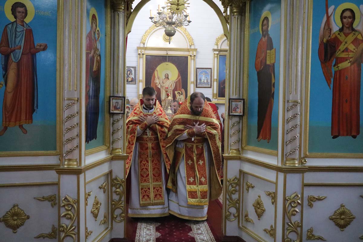 08 ноября 2023 года в день памяти великомученика Димитрия Солунского, секретарь Брестского епархиального управления протоиерей Сергий Петрусевич в сослужение настоятеля храма святителя Николая Чудотворца в д. Большие Сехновичи архимандрита Алексия (Петрусевича), настоятеля храма святого великомученика Дмитрия Солунского в д. Рогозно протоиерея Владимира Алексеева, настоятеля храма святителя Николая Чудотворца в аг. Озяты священника Вадима Литвинюка, настоятеля храма Покрова Пресвятой Богородицы в д. Орепичи священника Василия Ищенко, настоятеля храма святого равноапостольного князя Владимира в д. Чижевщина священника Александра Сытина, настоятеля храма Успения Пресвятой Богородицы в д. Бульково священника Петра Дударчука, настоятеля храма святого Архангела Михаила в аг. Степанки священника Георгия Залевского, настоятеля храма святого великомученика Никиты в г. Жабинка священника Михаила Колодяжного, совершил Божественную литургию в храме святого великомученика Димитрия Солунского в д. Рогозно Жабинковского района по случаю престольного праздника. После сугубой ектении была вознесена молитва о восстановлении мира. По окончании Божественной литургии был совершен праздничный молебен и крестный ход вокруг храма. После уставных многолетий протоиерей Сергий Петрусевич поздравил настоятеля и прихожан храма с престольным праздником, а также обратился к молящимся со словом назидания. В дар храму благочинным была передана икона преподобномученика Макария, архимандрита Каневского, игумена Каменецкого.