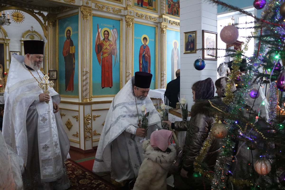 13 января 2024 года в день Отдания праздника Рождества Христова, секретарь Брестского епархиального управления, благочинный церквей Жабинковского округа протоиерей Сергий Петрусевич в сослужение настоятеля храма святого великомученика Дмитрия Солунского в д. Рогозно протоиерея Владимира Алексеева, настоятеля храма святителя Николая Чудотворца в д. Озяты священника Вадима Литвинюка, настоятеля храма Покрова Пресвятой Богородицы в д. Орепичи священника Василия Ищенко, настоятеля храма Успения Пресвятой Богородицы в д. Бульково священника Петра Дударчука, клирика храма Покрова Пресвятой Богородицы в г.Жабинка священника Максима Волка, настоятеля храма святого Архангела Михаила в аг. Степанки священника Георгия Залевского, настоятеля храма святого великомученика Никиты в г. Жабинка священника Михаила Колодяжного совершил Божественную литургию в храме святого великомученика Димитрия Солунского в д. Рогозно Жабинковского района. За богослужением была вознесена молитва о восстановлении мира. По окончании Божественной литургии храма протоиерей Владимир Алексеев совершил благодарственный молебен. В завершение богослужения благочинный обратился к молящимся со словом назидания, также от лица духовенства поздравил протоиерея Владимира Алексеева с 70-летием со дня рождения и преподнес букет цветов.
