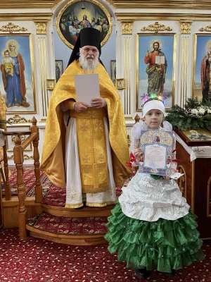 Прихожанам храма была представлена театрализированная сказка «Теремок», по окончании которой в исполнении детей прозвучали стихи на рождественскую тематику и песнопение «Это ночь святая...». Каждому гостю праздника был подарена открытка в виде ангела, также подготовленные воспитанниками воскресной школы. Настоятель храма архимандрит Алексий (Петрусевич) выразил благодарность педагогам воскресной школы за труд, проделанный для организации программы. Дети получили из рук настоятеля просфоры и сладкие подарки. Участникам Международного конкурса рисунков «Красота Божьего мира» были вручены памятные грамоты от архиепископа Брестского и Кобринского Иоанна.