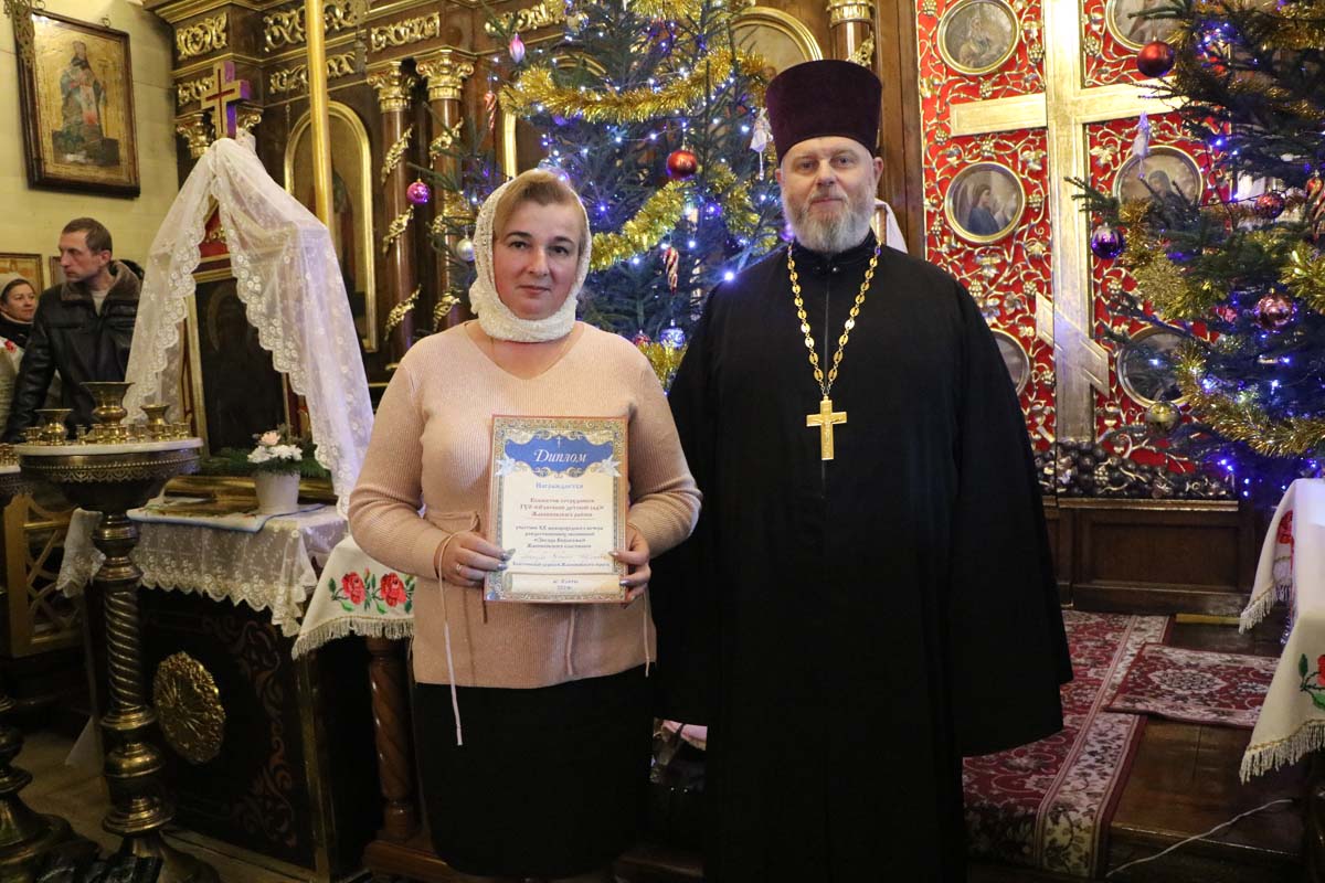 11 января 2023 года в храме святителя Николая Чудотворца в аг. Озяты Жабинковского благочиния состоялся XX межприходской вечер рождественских песнопений «Звезда Вифлеема» с участием 12 хоровых коллективов: хор храма Покрова Пресвятой Богородицы в г. Жабинка (рег. Петрусевич Е.В.), молодежный хор «Покров» храма Покрова Пресвятой Богородицы в г. Жабинка (рег. Марковская Н.В.), хор храма святителя Николая Чудотворца в аг. Озяты (рег. Бокач Н.В.), хор сотрудников ГУО «Озятский детский сад» Жабинковского района (рег. Бокач Н.Е.), вокальный коллектив «Белые росы» и детская вокальная группа Озятский СДК ГУК «Жабинковская центральная клубная система» (рук. Хомук Т.В.), хор гарнизонного собора святителя Николая Чудотворца в Брестской крепости (рег. Масло Т.В.), хор храма святого равноапостольного князя Владимира в д. Чижевщина (рег. Пышинская Л.И.), хор храма святого Архангела Михаила в аг. Степанки, хор храма святого великомученика Никиты в г. Жабинка (рег. Турицына Г.И.), молодежный хор храма святого великомученика Никиты в г. Жабинка (рег. Янюк Е.В.), детский хор ГУО «Старосельская средняя школа Жабинковского района» (рук. Бычек Е.И.), хор храма святой великомученицы Параскевы Пятницы в д. Орехово Малоритского района. В завершение вечера к участникам и организаторам торжества обратился благочинный церквей Жабинковского округа протоиерей Сергий Петрусевич со словами поздравления с праздником Рождества Христова и пожеланиями мира и Божьего благословения на предстоящий год. Священнослужитель выразил слова благодарности настоятелю храма святителя Николая Чудотворца в аг. Озяты священнику Вадиму Литвинюку за организацию и проведение в святые вечера на приходе на протяжение 20 лет рождественских встреч. Руководителям коллективов благочинный вручил дипломы участника. Со словами поздравления к участникам торжеств также обратилась председатель Озятского сельского совета Зинкевич Е.И. Священник Вадим Литвинюк выразил слова благодарности всем участникам и пожелал поддерживать традицию рождественских встреч на приходе.