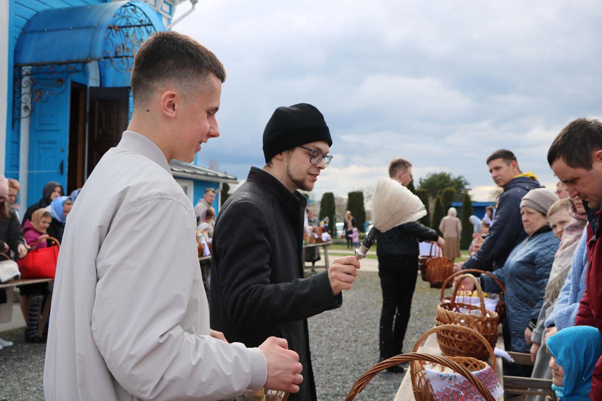 23 апреля 2022 года, по окончании Божественной литургии, секретарь Брестского епархиального управления, благочинный церквей Жабинковского округа, настоятель храма Покрова Пресвятой Богородицы в г. Жабинка протоиерей Сергий Петрусевич и клирик храма священник Максим Волк совершили освящение пасхальной снеди в г. Жабинка и населенных пунктах прихода: д. Саки, д. Рудка и д. Соколово.
