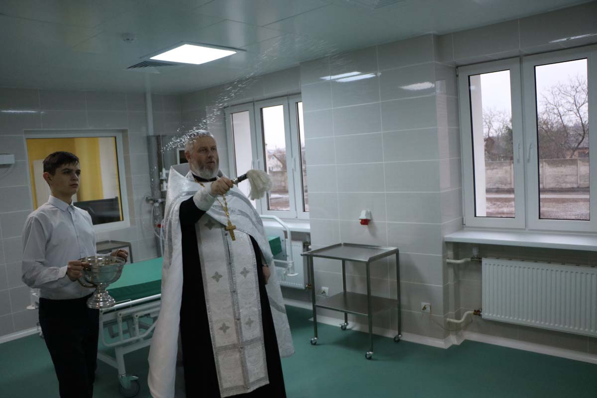 Священнослужитель поздравил главного врача Орловца И.Ю. и коллектив учреждения здравоохранения с завершением масштабной реконструкции отделения и пожелал совершать служение страдающим от различных болезней людям с упованием на Божию помощь. Далее состоялось окропление святой водой помещений, реанимационного оборудования, а также благословение медицинских работников.