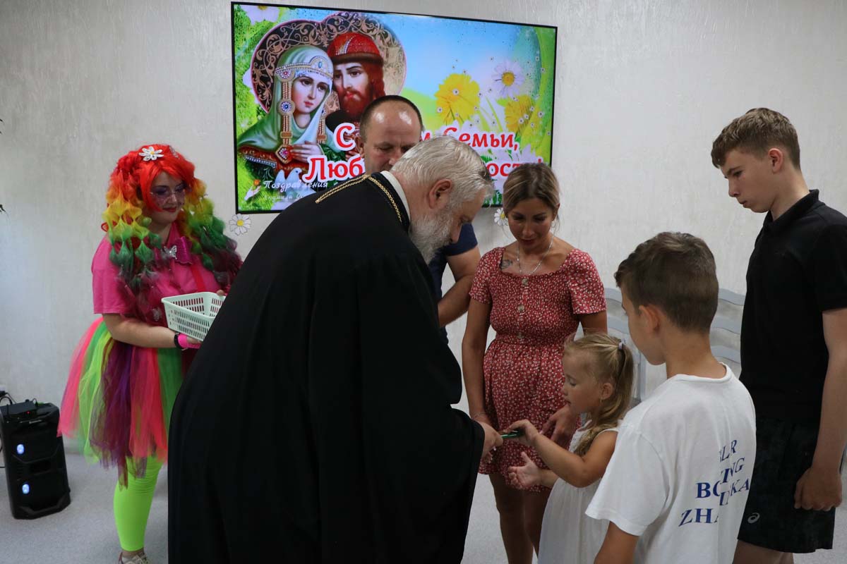 09 июля 2024 года в ГУ «Жабинковский территориальный центр социального обслуживания населения» состоялся праздник «Семья-единение и любовь», посвященный памяти святых Петра и Февронии, а также Дню семьи, любви и верности. В семейном торжестве приняли участие многодетные семьи города Жабинки. Участникам встречи были предложены игры, конкурсы, музыкальные номера, которые объединили творческие усилия родителей и детей. Присутствующих приветствовал благочинный церквей Жабинковского округа протоиерей Сергий Петрусевич. Священнослужитель поздравил с праздником в честь святых покровителей семьи и пожелал хранить верность в семьях, а в молитве к Богу искать помощь и укреплять духовные и телесные силы для несения семейного креста. В завершение праздничной встречи начальник управления по труду, занятости и социальной защите Жабинковского райисполкома Маринич Т.В. пожелала всем присутствующим семейного благополучия, мира, любви и согласия. Семьям, принявшим участие в празднике, священнослужитель вручил на память иконы святых благоверных Петра и Февронии и сладкие подарки, а от социального учреждения Ребекевша О.А. вручила сувениры.