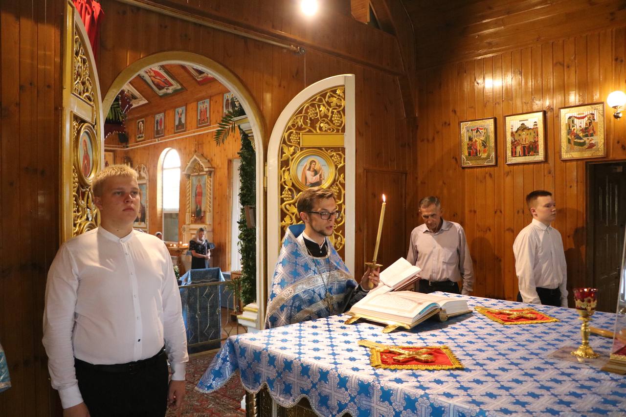 01 сентября священник Максим Волк совершил Божественную литургию. После чтения Евангелия священнослужитель обратился к молящимся с проповедью о крестоношении в жизни христианина (1 Кор. 9,2-12). После сугубой ектении была вознесены молитвы о восстановлении мира и даровании дождя. Богослужебные песнопения исполнил хор под управлением Петрусевич Е.В. По окончании Божественной литургии был совершен молебен о плодоносящих (беременных) женщинах, который по традиции совершается в храме в первое воскресенье месяца. Далее протоиерей Сергий Петрусевич поздравил прихожан храма, учащихся и педагогов воскресной школы с началом учебного года. Вечером в храме была совершена вечерня с акафистом Покрову Божией Матери на распев. Богослужебные песнопения исполнил хор под управлением Петрусевич Е.В. По окончании богослужения священник Максим Волк обратился к молящимся с проповедью. Также в храме пророка Ильи д. Саки Жабинковского района протоиерей Сергий Петрусевич совершил молебен с акафистом мученикам Адриану и Наталии. Богослужебные песнопения исполнил хор под управлением Шищиц Н.М. В завершение богослужения священнослужитель обратился к молящимся со словом назидания.