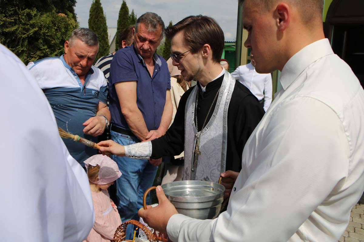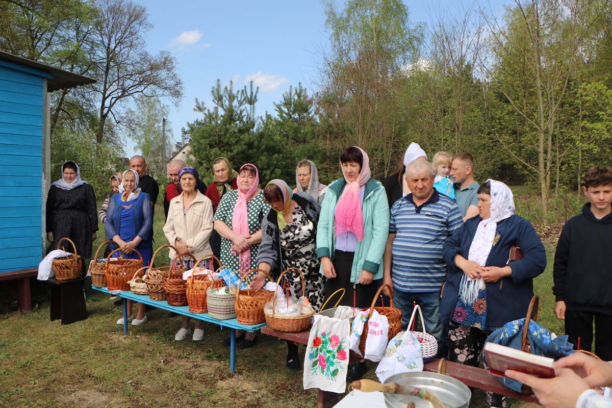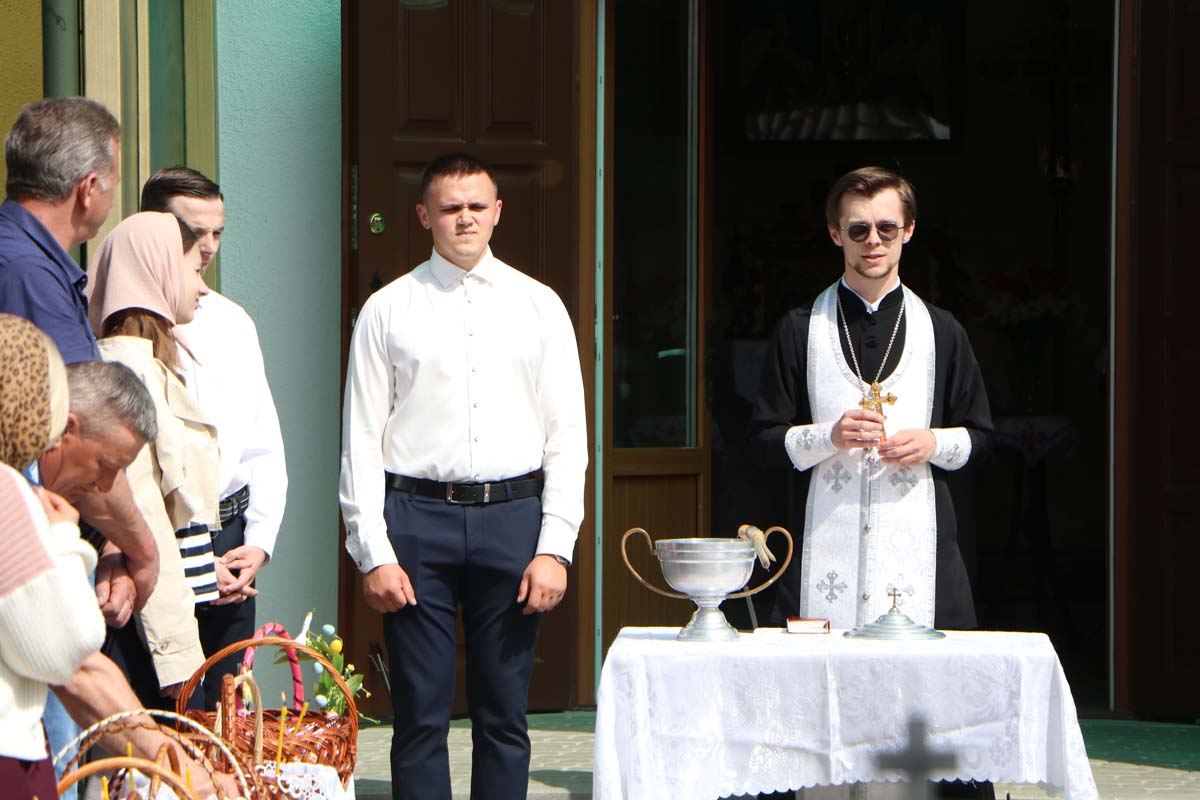 19 апреля 2025 года по окончании Божественной литургии, секретарь Брестского епархиального управления, благочинный церквей Жабинковского округа, настоятель храма Покрова Пресвятой Богородицы в г. Жабинка протоиерей Сергий Петрусевич и клирик храма священник Максим Волк совершили освящение пасхальной снеди в г. Жабинка и населенных пунктах прихода: д. Саки, д. Рудка и д. Соколово.