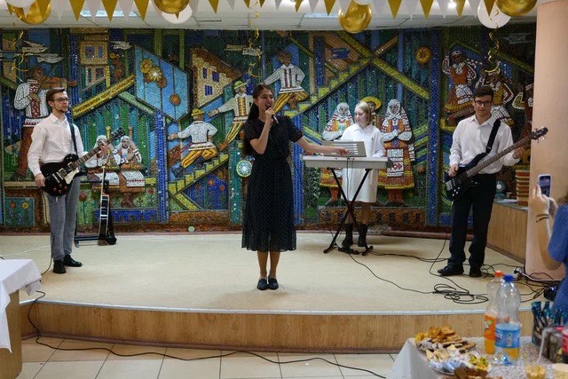 Далее торжества продолжились в Городском Доме культуры ГУК «Жабинковская районная централизованная клубная система». Гостям праздника был предложен фуршет, подготовленный силами молодежного братства святителя Кирилла Туровского храма Покрова Пресвятой Богородицы в г. Жабинка. Перед началом развлекательной программы со словами приветствия к собравшимся обратился руководитель молодежного братства, клирик храма Покрова Пресвятой Богородицы в г. Жабинка священник Максим Волк. Затем состоялся танцевальный мастер-класс. Участники встречи смогли освоить регтайм, рок-н-ролл и ирландский вальс. Гостям мероприятия был предложен видеосюжет о жизни «молодежки» за весь период ее существования и конкурсная игровая программа. Молодые люди их разных концов Беларуси и ближнего зарубежья, прежде бывшие членами молодежного объединения, подготовили свои видеопоздравления, которые были показаны между блоками развлекательной программы. Далее состоялось выступление музыкального коллектива молодежного братства «Pokrov-band». В исполнении ребят прозвучали современные песни и композиция собственного сочинения.