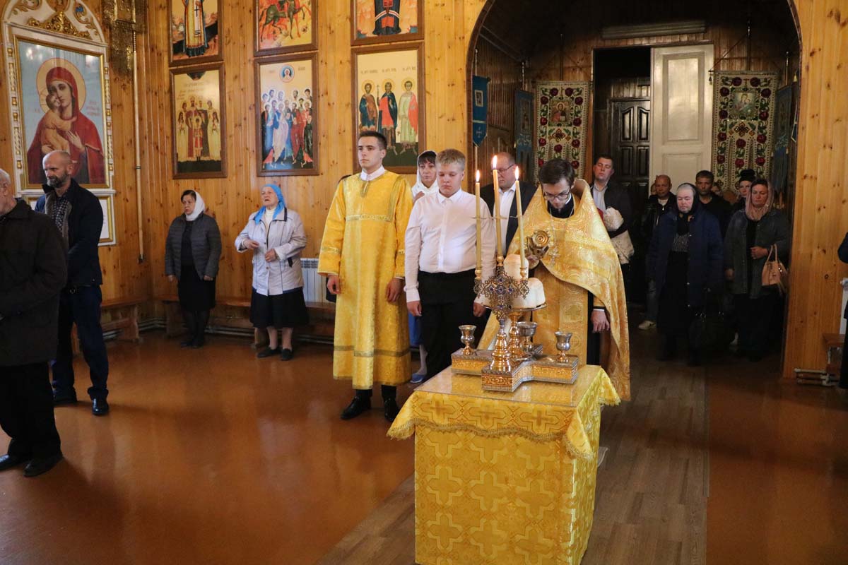 Богослужебные песнопения исполнил молодежный хор «Покров» под управлением Марковской Н.В. Во время пения запричастного стиха был совершен Чин воцерковления младенцев. По окончании Божественной литургии был совершен молебен и панихида. В завершение богослужения священник Максим Волк приветствовал родителей с младенцем, над которым в этот день совершался Чин воцерковления.