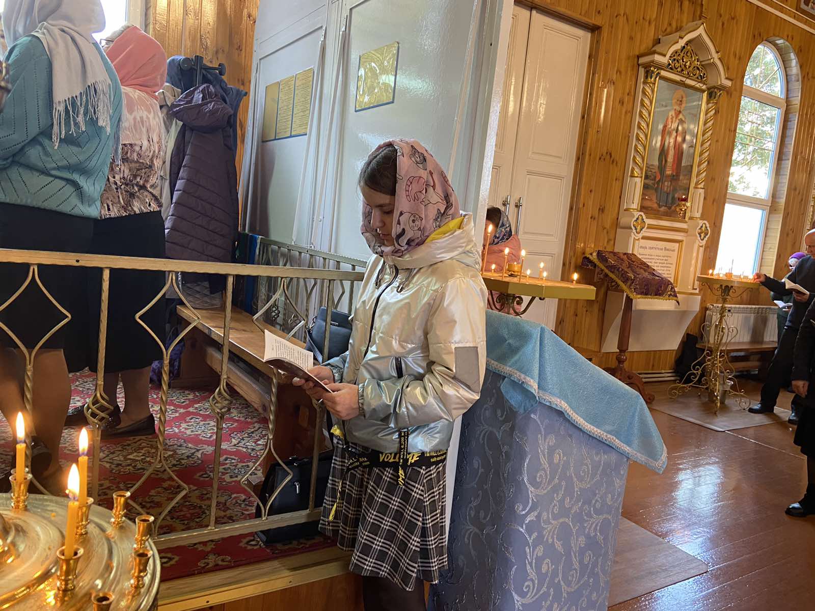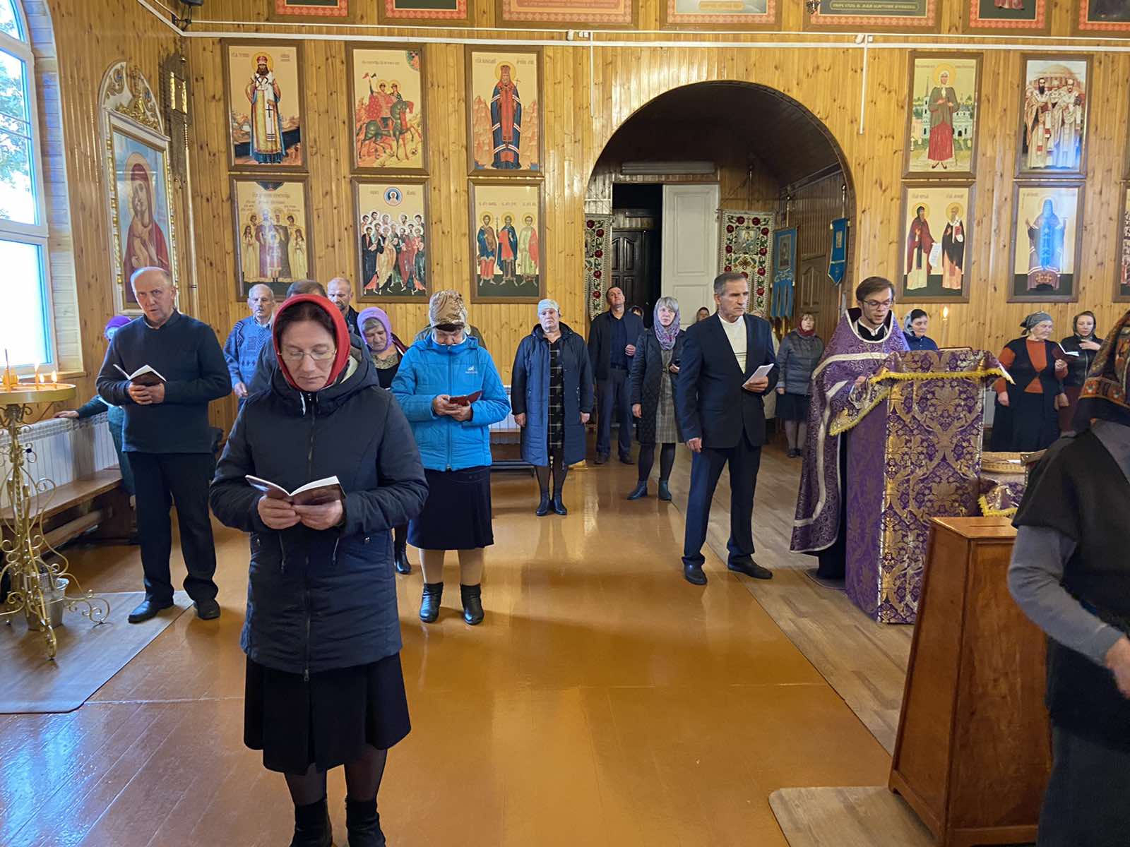 Вечером в храме была совершена вечерня с акафистом Покрову Божией Матери на распев. Богослужебные песнопения исполнил хор под управлением Петрусевич Е.В. По окончании богослужения священник Максим Волк обратился к молящимся с проповедью. Также в храме пророка Ильи д. Саки Жабинковского района протоиерей Сергий Петрусевич совершил молебен с акафистом святителю Тихону, патриарху Московскому и всея России и обратился к молящимся со словом назидания.