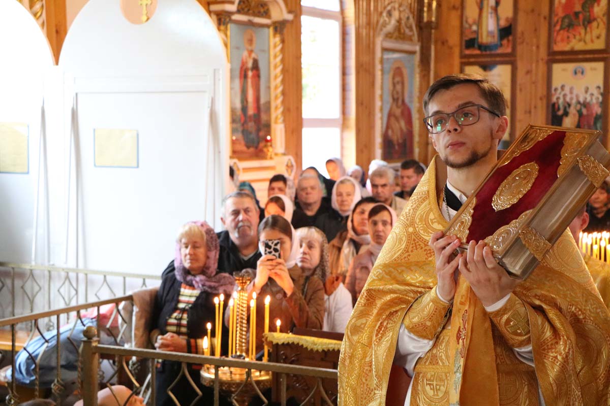 16 октября священник Максим Волк совершил Божественную литургию. После чтения Евангелия священнослужитель обратился к молящимся с проповедью о нравственном законе Евангелия (Лк.6, 31-36). На сугубой ектении были вознесены прошения о даровании мира и благополучия белорусскому народу, а также о прекращении распространения губительного поветрия. После сугубой ектении была вознесена молитва о восстановлении мира. Богослужебные песнопения исполнил хор под управлением Петрусевич Е.В. По окончании Божественной литургии был совершен молебен и панихида.