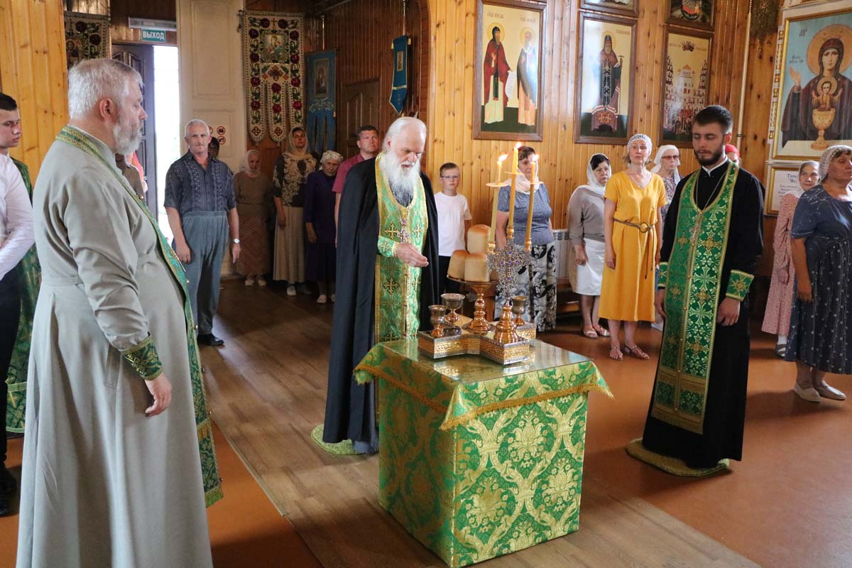 18 июля протоиерей Сергий Петрусевич в сослужение настоятеля храма святителя Николая Чудотворца в д. Большие Сехновичи Жабинковского района архимандрита Алексия (Петрусевича), клирика храма преподобного Симеона Столпника г. Каменец священника Валерия Рогового, настоятеля храма святого равноапостольного князя Владимира аг. Муховец Брестского района священника Димитрия Иванова, настоятеля храма преподобной Параскевы Сербской д. Збироги Брестского района священника Николая Хивука, клирика кафедрального собора преподобного Симеона Столпника г. Бреста священника Алексия Макаренко, настоятеля храма святого великомученика Никиты г. Жабинка священника Михаила Колодяжного, клирика кафедрального собора преподобного Симеона Столпника г. Бреста диакона Иоанна Шкулепы возглавил совершение Божественной литургии. На сугубой ектении были вознесены прошения о даровании мира и благополучия белорусскому народу, а также о прекращении распространения губительного поветрия. После сугубой ектении была вознесена молитва о восстановлении мира. На заупокойной ектении были вознесены молитвы о упокоении рабы Божией Ольги – матери протоиерея Сергия Петрусевича. Богослужебные песнопения исполнил хор под управлением Петрусевич Е.В.