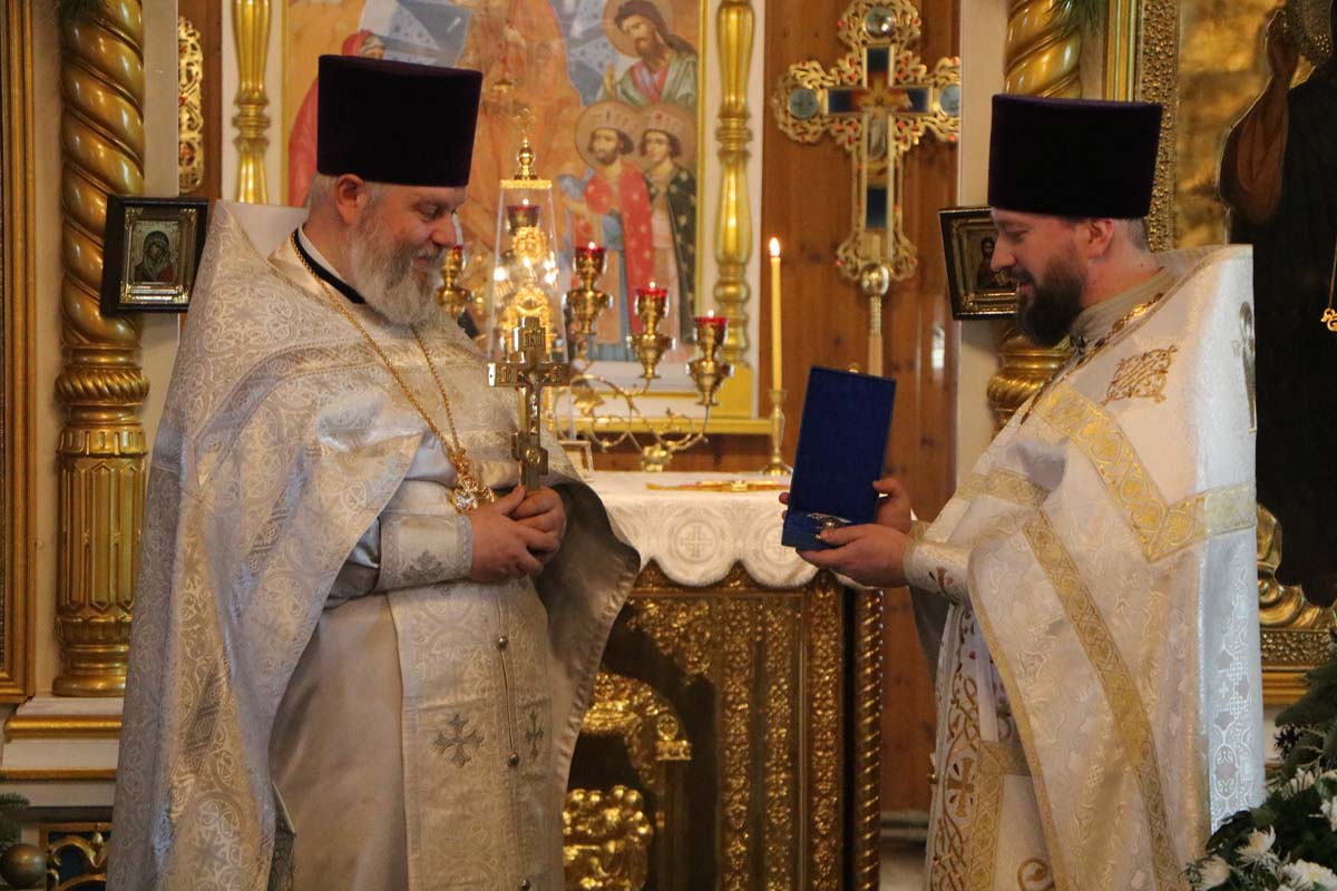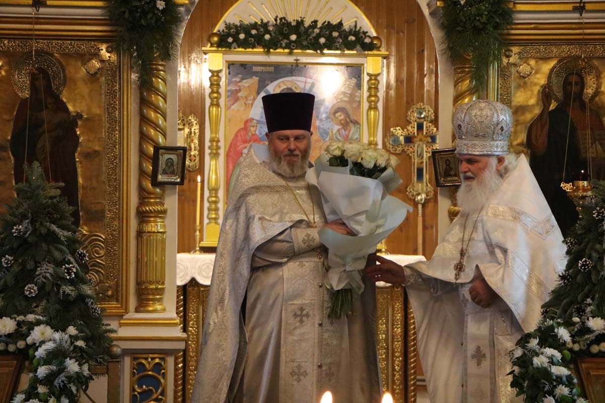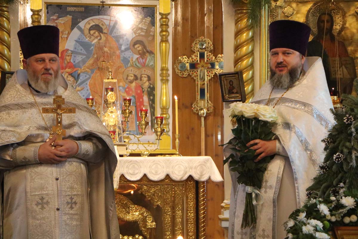 20 января 2025 года в день празднования Собора Предтечи и Крестителя Господня Иоанна, секретарь Брестского епархиального управления, благочинный церквей Жабинковского округа, настоятель храма Покрова Пресвятой Богородицы в г. Жабинка протоиерей Сергий Петрусевич в сослужение настоятеля храма святителя Николая Чудотворца в д. Большие Сехновичи архимандрита Алексия (Петрусевича), настоятеля храма святого великомученика Дмитрия Солунского в д. Рогозно протоиерея Владимира Алексеева, настоятеля гарнизонного храма святителя Николая Чудотворца в Брестской крепости протоиерея Виталия Хоновца, настоятеля храма святителя Николая Чудотворца в аг. Озяты священника Вадима Литвинюка, настоятеля храма Покрова Пресвятой Богородицы в д. Орепичи священника Василия Ищенко, настоятеля храма Тихвинской иконы Божией Матери в г. Бресте священника Андрея Петрусевича, настоятеля храма Успения Пресвятой Богородицы в д. Бульково священника Петра Дударчука, настоятеля храма Вознесения Господня д. Огородники священника Владимира Кондращука, настоятеля храма святого Архангела Михаила в аг. Степанки священника Георгия Залевского, настоятеля храма святого великомученика Никиты в г. Жабинка священника Михаила Колодяжного, клирика собора Воскресения Христова в г. Бресте диакона Константина Киселюка совершил Божественную литургию в храме Покрова Пресвятой Богородицы в г. Жабинка. После сугубой ектении была вознесена молитва о восстановлении мира. На заупокойной ектении были вознесены молитвы о упокоении рабы Божией Ольги – матери протоиерея Сергия Петрусевича. Богослужебные песнопения исполнил хор под управлением Петрусевич Е.В. По окончании Литургии был совершен молебен. В завершение богослужения настоятель храма святителя Николая Чудотворца в д. Большие Сехновичи архимандрит Алексий (Петрусевич) от духовенства Жабинковского благочиния поздравил протоиерея Сергия Петрусевича 20-летием иерейской хиротонии. Также со словами поздравления к священнослужителю обратились настоятель гарнизонного храма святителя Николая Чудотворца в Брестской крепости протоиерей Виталий Хоновец, настоятель храма Тихвинской иконы Божией Матери в г. Бресте священник Андрей Петрусевич и пономари храма. В ответном слове отец Сергий поблагодарил духовенство за соборную молитву и слова поздравления, а также всех, кто разделил радость молитвы в этот день, поздравил с праздником и выразил слова благодарности за поздравления и пожелания.