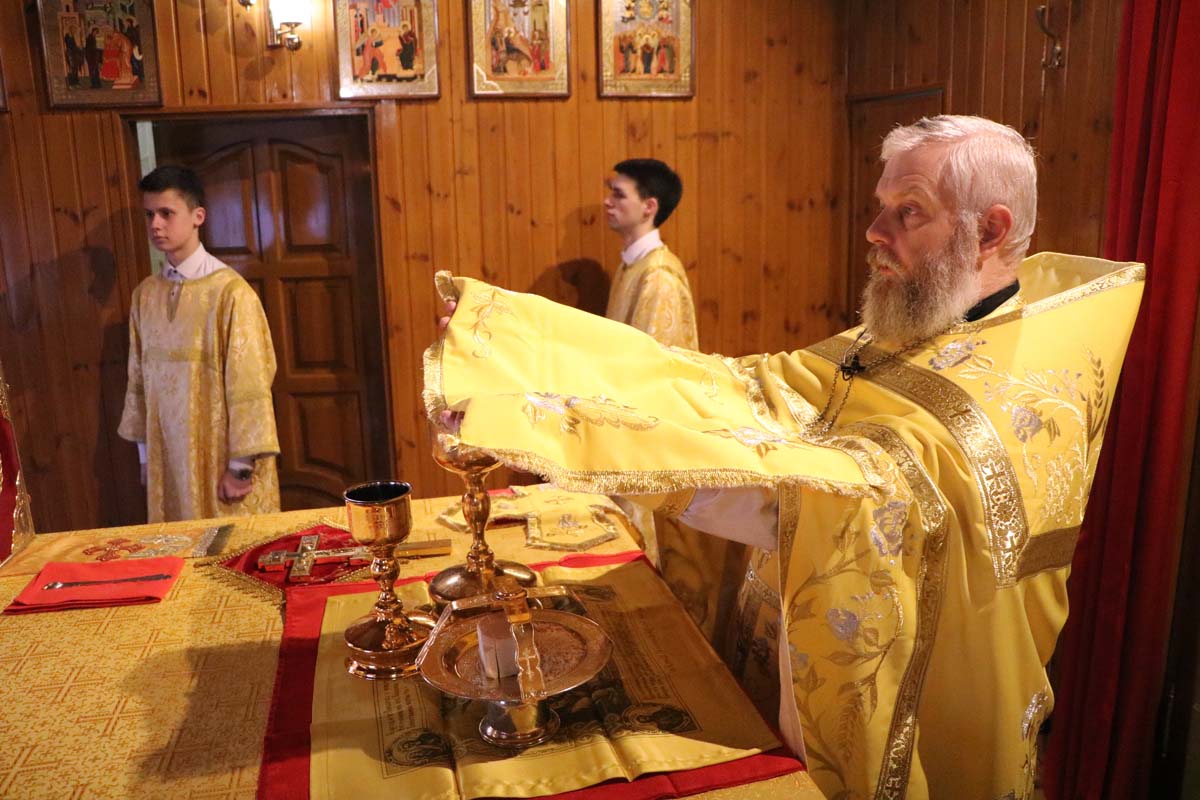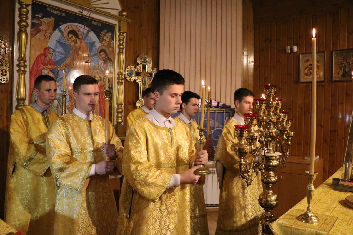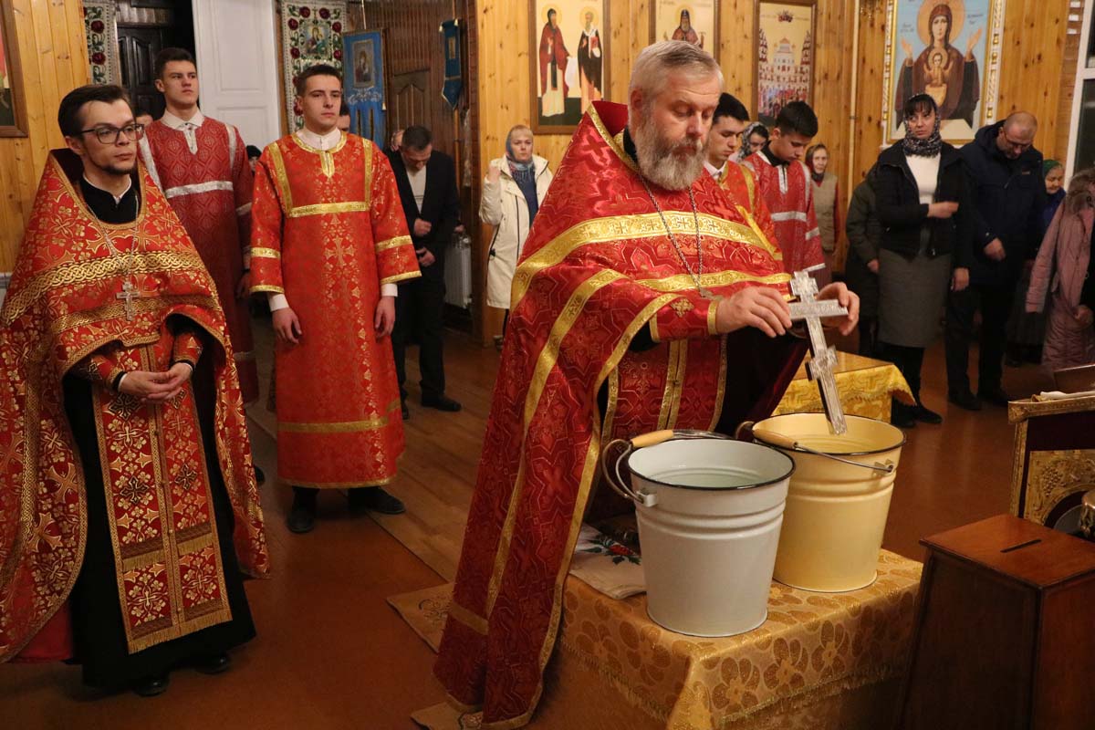 Вечером в храме была совершена вечерня с акафистом мученику Вонифатию, водосвятный молебен и сугубая молитва о белорусском народе. По окончании богослужения священник Максим Волк обратился к молящимся со словом назидания.