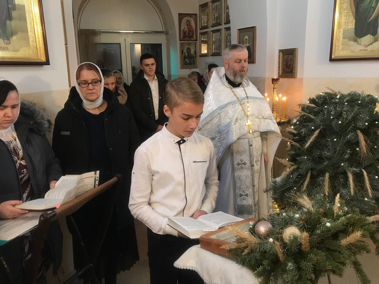 Богослужебные песнопения исполнил хор под управлением Шищиц Н.М. По окончании Литургии был совершен молебен Божией Матери и панихида. В завершение богослужения священнослужитель обратился к молящимся со словами поздравления с праздником Рождества Христова.