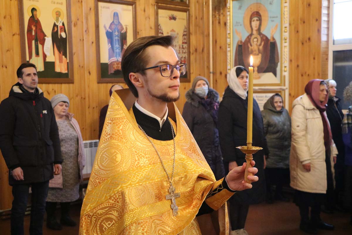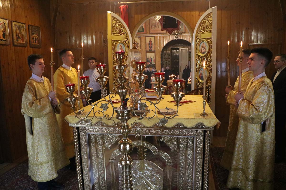 06 марта священник Максим Волк совершил Божественную литургию. После чтения Евангелия священнослужитель обратился к молящимся с проповедью о лишении первых людей общения с Богом. На сугубой ектении были вознесены прошения о даровании мира и благополучия белорусскому народу, а также о прекращении распространения губительного поветрия. После сугубой ектении была вознесена молитва о восстановлении мира. Во время пения запричастного стиха был совершен Чин воцерковления младенца.
