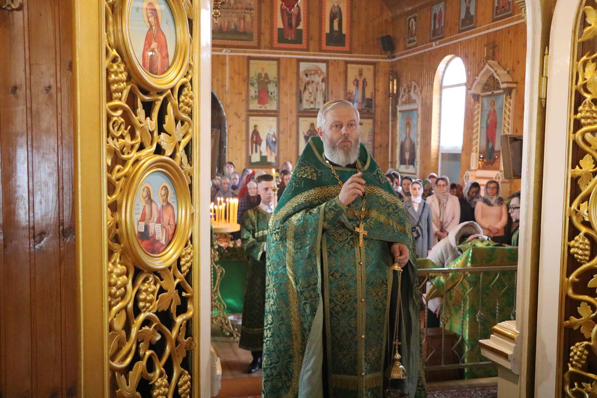 09 апреля протоиерей Сергий Петрусевич в сослужение клирика храма священника Максима Волка совершил Божественную литургию. После чтения Евангелия настоятель храма обратился к молящимся с проповедью о Царстве не от мира сего. На сугубой ектении были вознесены прошения о даровании мира и благополучия белорусскому народу, а также о прекращении распространения губительного поветрия. После сугубой ектении была вознесена молитва о восстановлении мира. Богослужебные песнопения исполнил хор под управлением Петрусевич Е.В. Во время пения запричастного стиха был совершен Чин воцерковления младенца. По окончании Божественной литургии протоиерей Сергий Петрусевич совершил молебен празднику и освящение верб. В завершение богослужения настоятель храма приветствовал родителей с младенцем, над которым в этот день совершался Чин воцерковления. Вечером в храме была совершен молебен с акафистом Страстям Христовым и молитва блаженной Матроне Московской. Богослужебные песнопения исполнил молодежный хор «Покров» под управлением Марковской Н.В. По окончании богослужения священник Максим Волк обратился к молящимся со словом назидания.