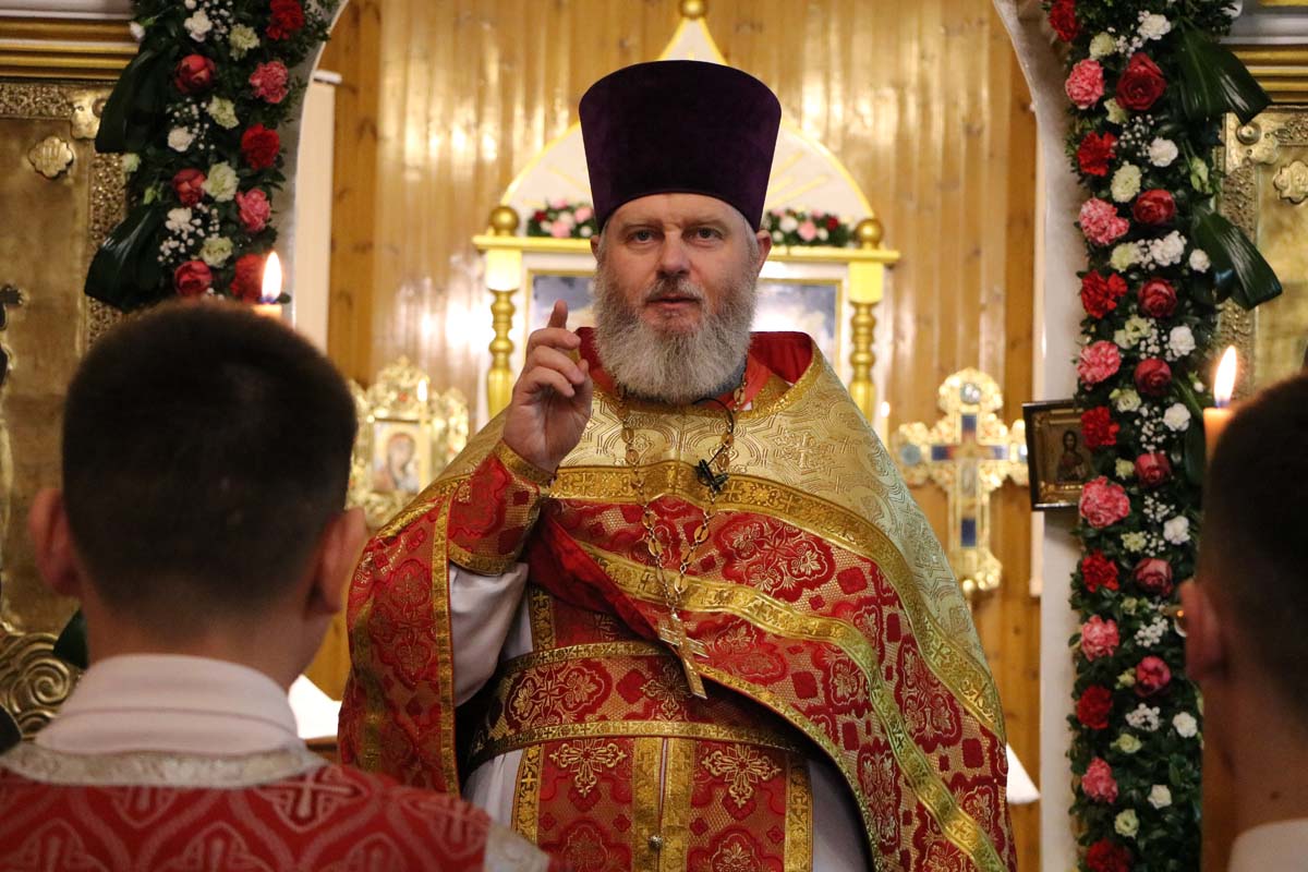 На сугубой ектении были вознесены прошения о даровании мира и благополучия белорусскому народу, а также о прекращении распространения губительного поветрия. После сугубой ектении была вознесена молитва о восстановлении мира. Богослужебные песнопения исполнил хор под управлением Петрусевич Е.В. После заамвонной молитвы было совершено освящение артоса и прочитаны молитвы на освящение пасхальной снеди.