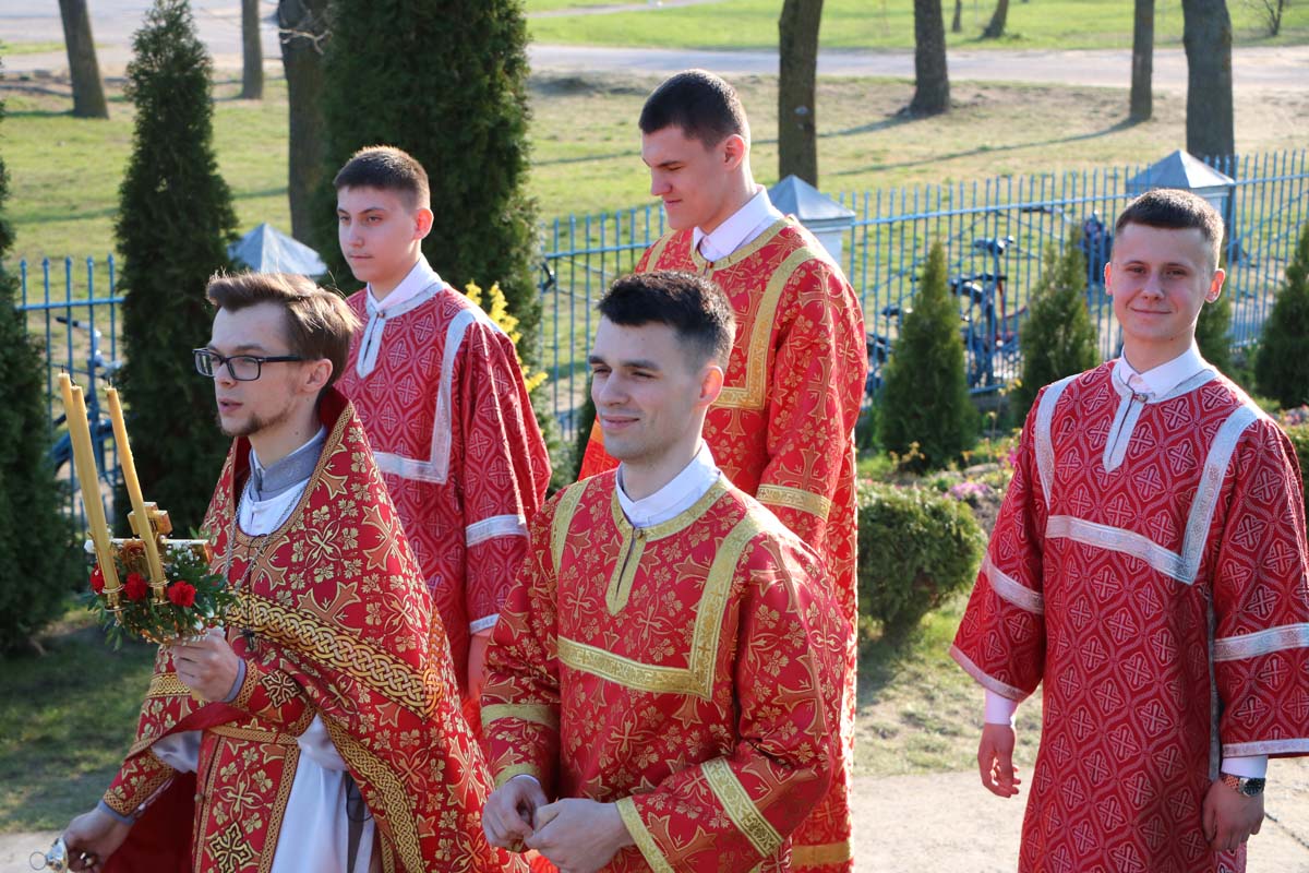 17 апреля секретарь Брестского епархиального управления, благочинный церквей Жабинковского округа протоиерей Сергий Петрусевич совершил Божественную литургию. После чтения Евангелия было оглашено Пасхальное послание митрополита Минского и Заславского Вениамина. На сугубой ектении были вознесены прошения о даровании мира и благополучия белорусскому народу, а также о прекращении распространения губительного поветрия. После сугубой ектении была вознесена молитва о восстановлении мира. Богослужебные песнопения исполнил хор под управлением Петрусевич Е.В. После окончания богослужения был совершен пасхальный молебен и крестный ход вокруг храма.
