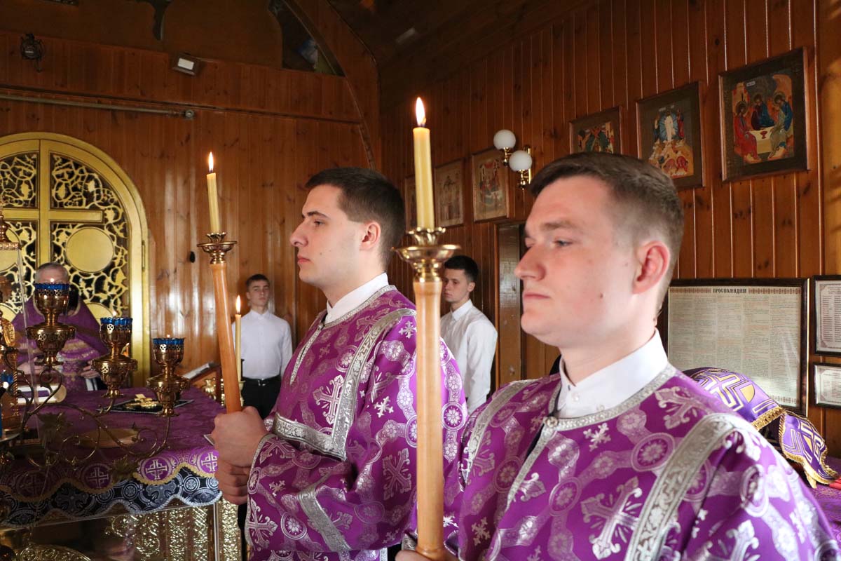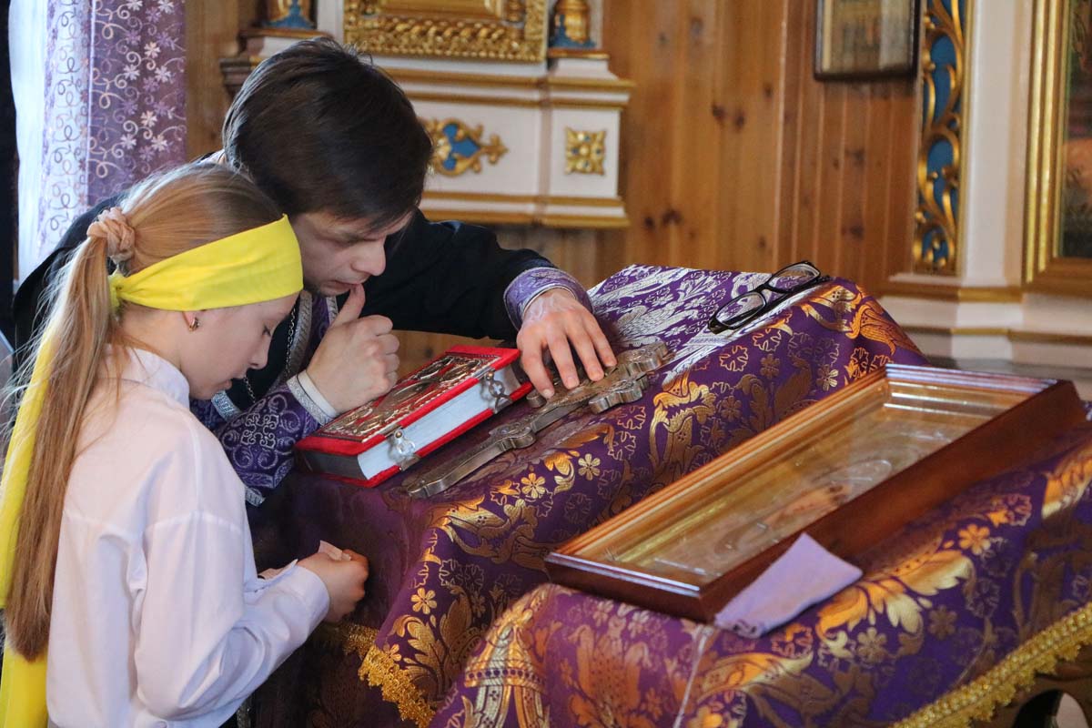 31 марта протоиерей Сергий Петрусевич совершил Божественную литургию святителя Василия Великого. После чтения Евангелия священнослужитель обратился к молящимся с проповедью об исцелении расслабленного (Мк.2,1-12). За богослужением была вознесена молитва о восстановлении мира. Богослужебные песнопения исполнил хор под управлением Петрусевич Е.В. Во время пения запричастного стиха был совершен Чин воцерковления младенцев. По окончании Божественной литургии был совершен молебен и панихида. В завершение богослужения настоятель храма приветствовал родителей с младенцами, над которыми в этот день совершался Чин воцерковления.