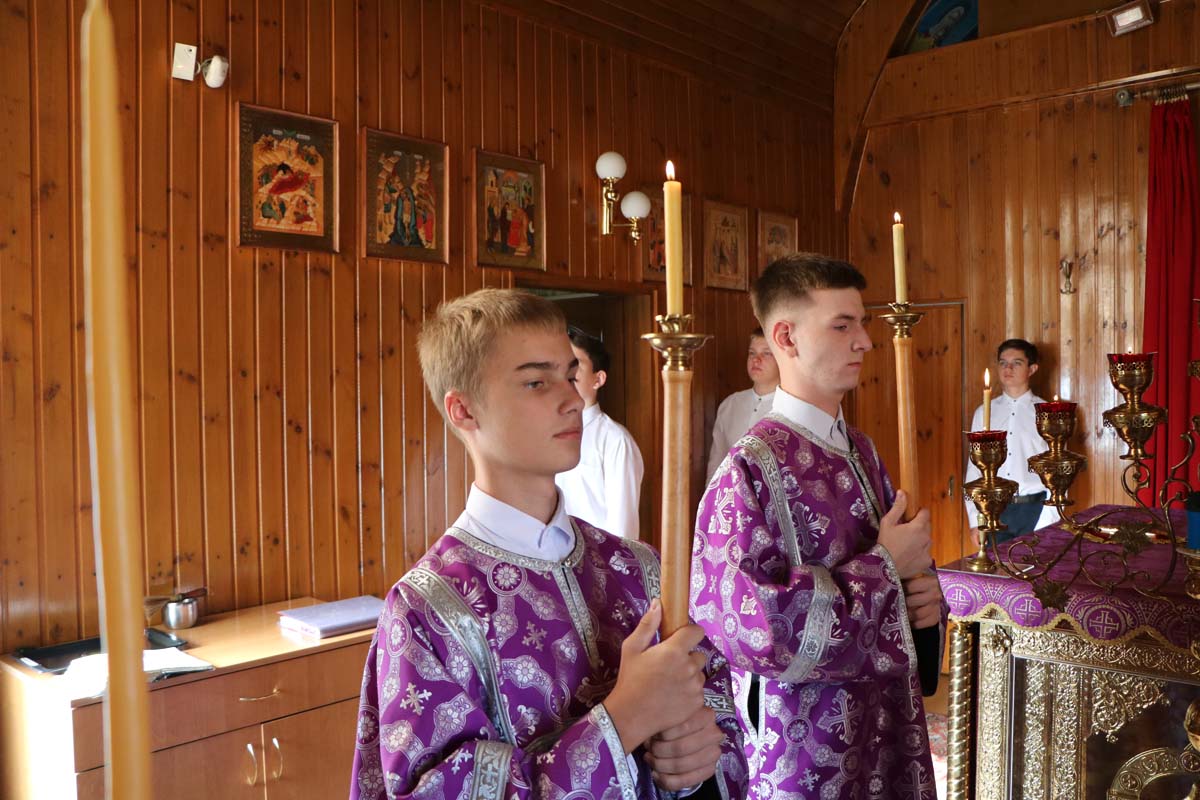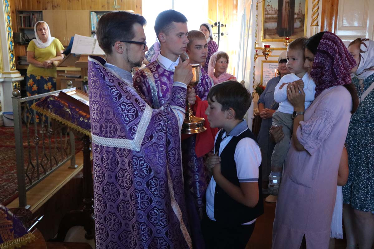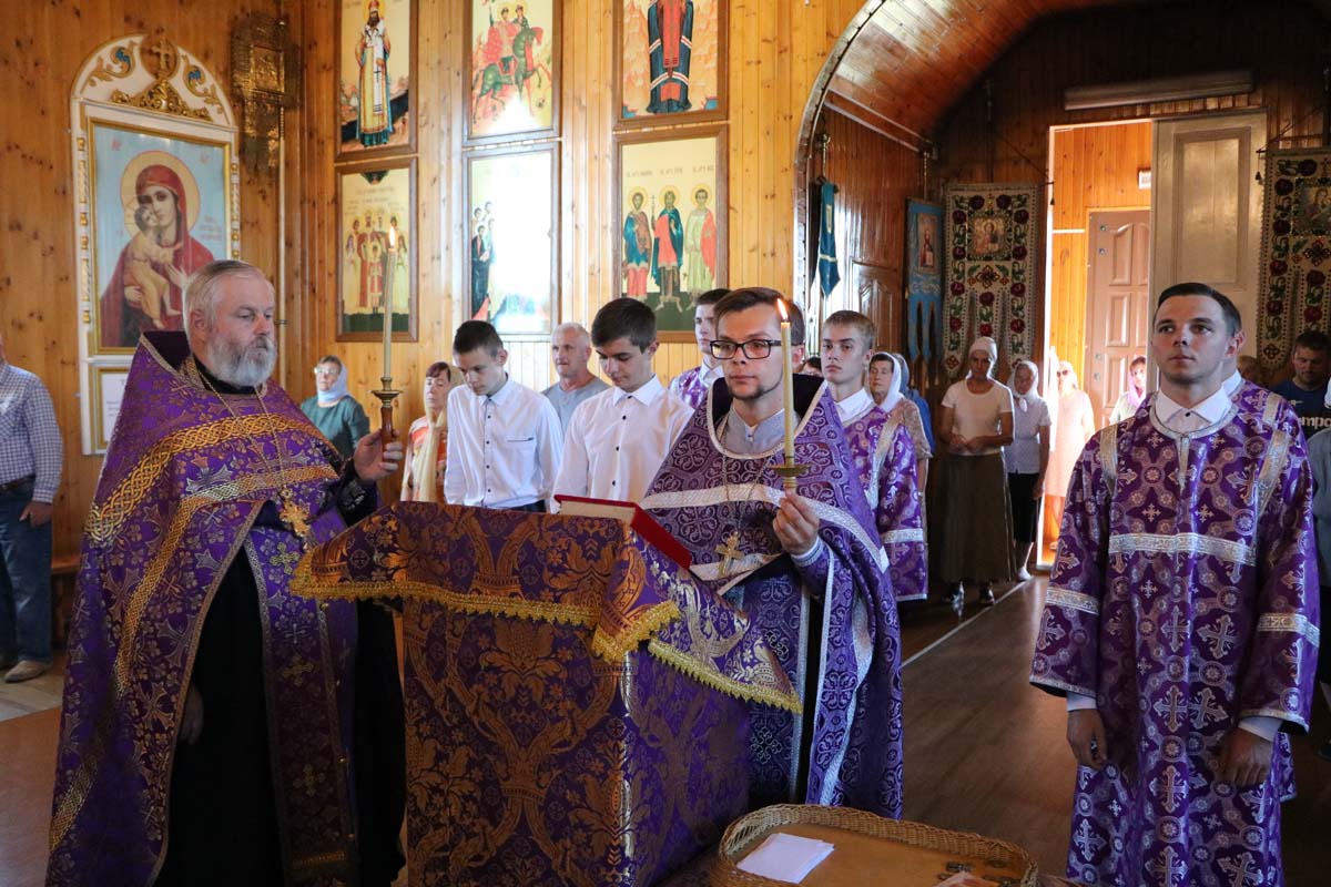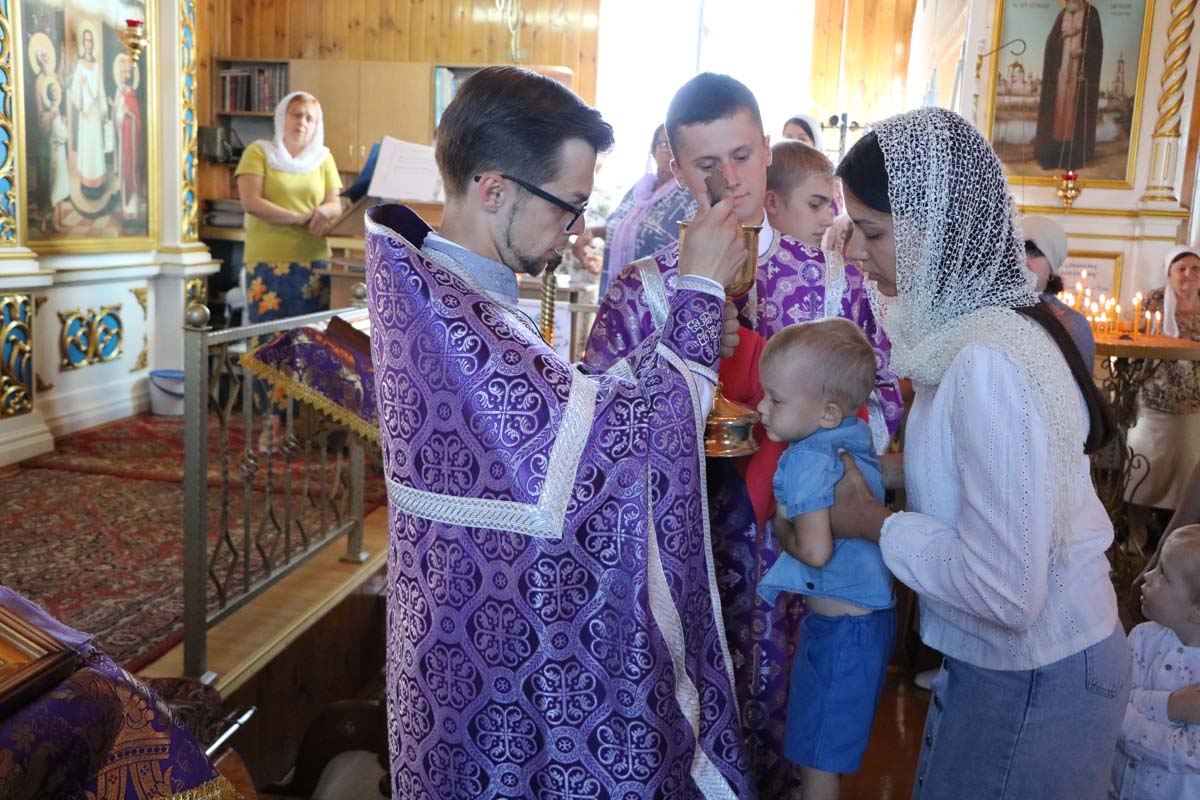 14 августа священник Максим Волк совершил Божественную литургию. После чтения Евангелия священнослужитель обратился к молящимся с проповедью о почитании Креста. После сугубой ектении была вознесена молитва о восстановлении мира. Богослужебные песнопения исполнил хор храма под управлением Петрусевич Е.В. По окончании Божественной литургии был совершен Чин малого освящения воды, освящение меда и панихида.