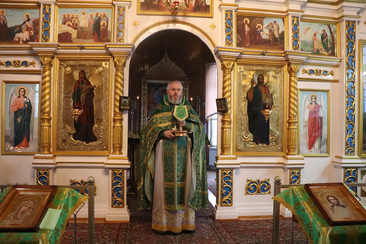 12 февраля 2022 года, в день памяти вселенских учителей и святителей Василия Великого, Григория Богослова и Иоанна Златоустого, секретарь Брестского епархиального управления, благочинный церквей Жабинковского округа, настоятель храма Покрова Пресвятой Богородицы в г. Жабинка протоиерей Сергий Петрусевич Божественную литургию в храме пророка Ильи д. Саки Жабинковского района.