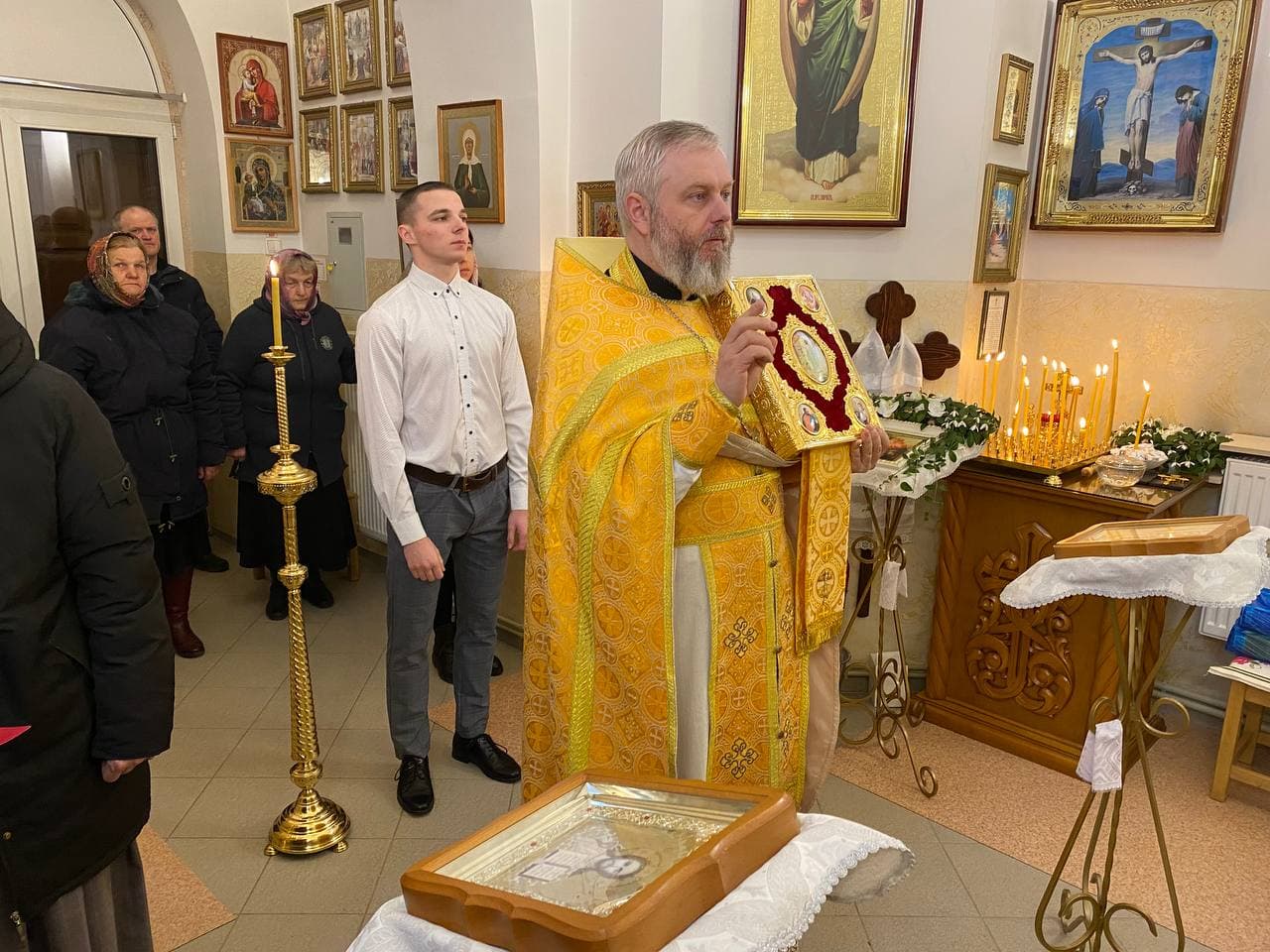 14 февраля 2022 года в канун праздника Сретения Господа Бога и Спаса нашего Иисуса Христа, секретарь Брестского епархиального управления, благочинный церквей Жабинковского округа, настоятель храма Покрова Пресвятой Богородицы в г. Жабинка протоиерей Сергий Петрусевич совершил всенощное бдение с литией в храме Покрова Пресвятой Богородицы в г. Жабинка.