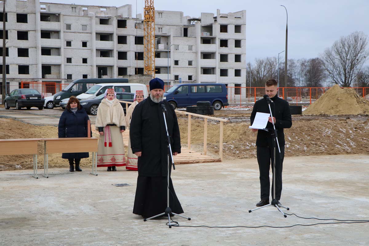 3 февраля 2022 года, благочинный церквей Жабинковского округа, настоятель храма Покрова Пресвятой Богородицы в г. Жабинка протоиерей Сергий Петрусевич по приглашению руководства Жабинковского районного исполнительного комитета принял участие в церемонии закладки первого девятиэтажного дома в новом жилом квартале г. Жабинка.