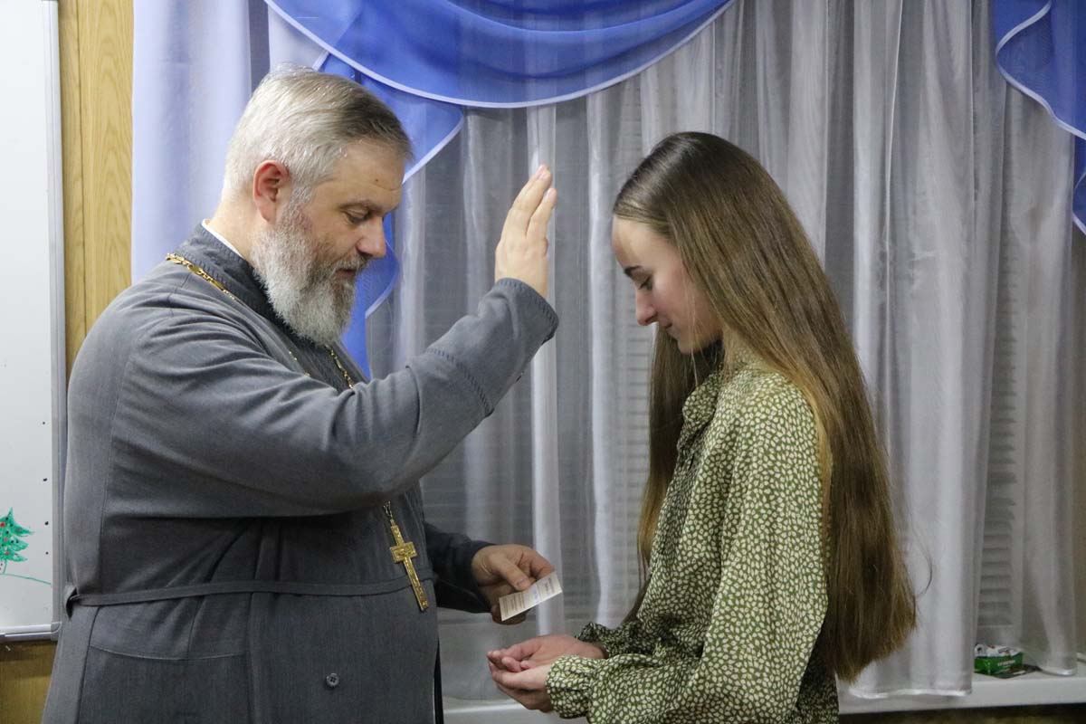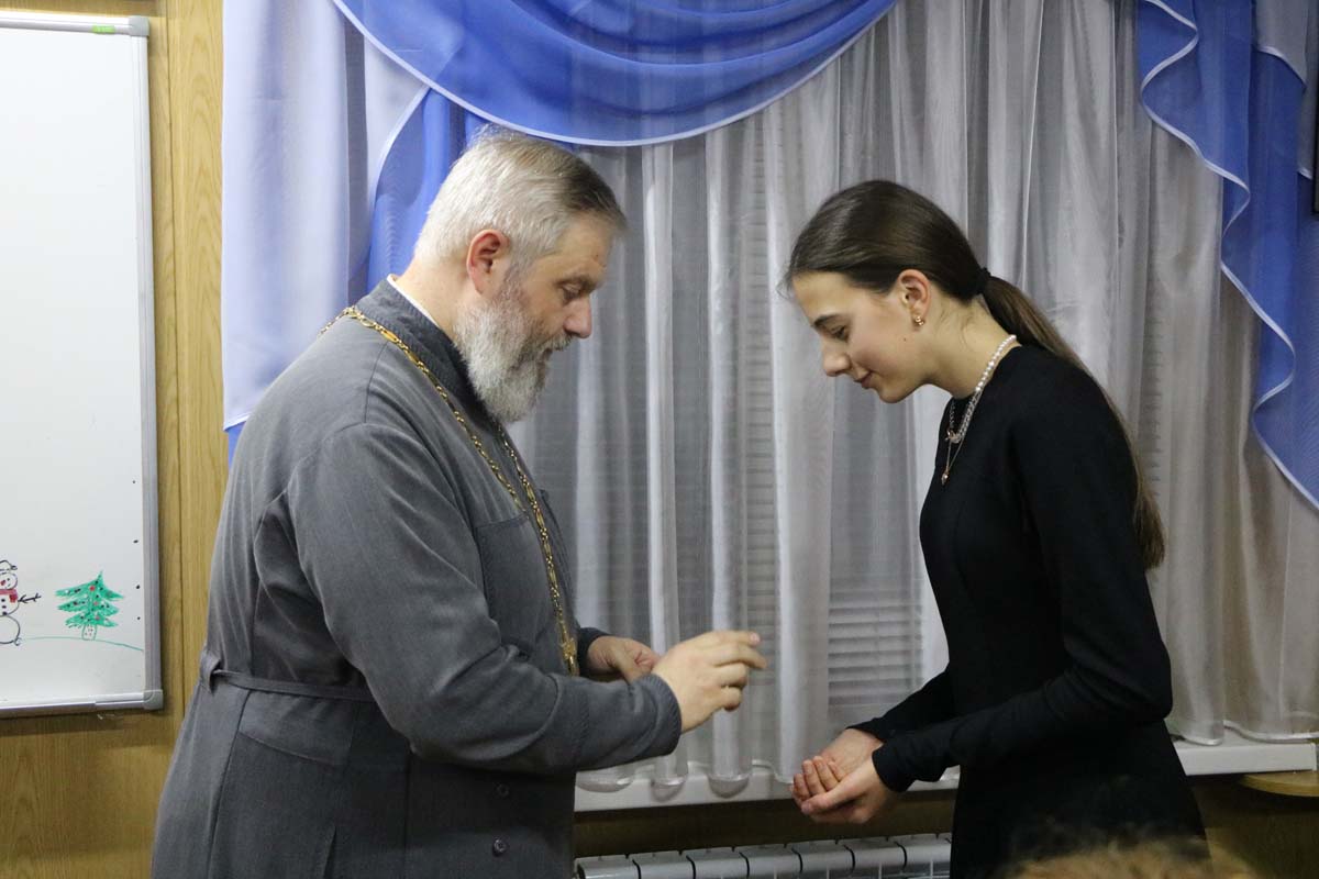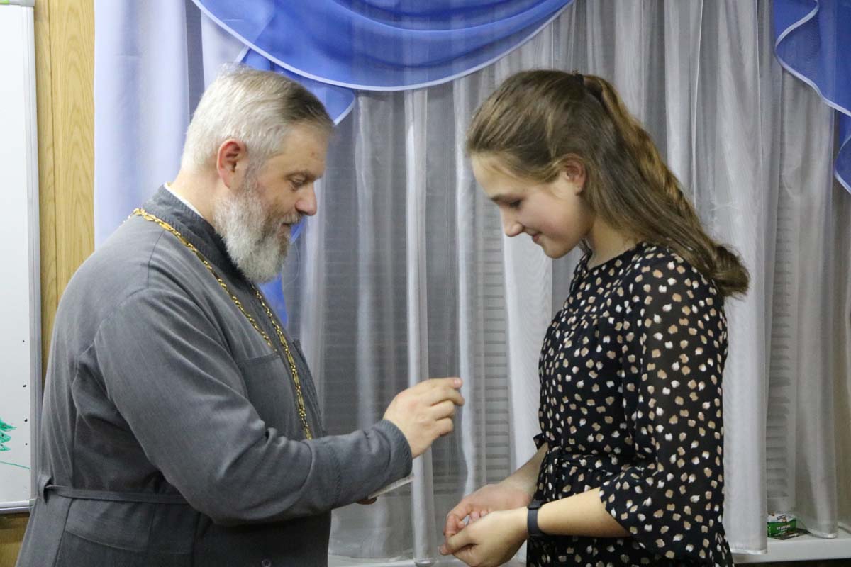 В завершение праздничной программы с приветственным словом к участникам и приглашенным обратился благочинный церквей Жабинковского округа протоиерей Сергий Петрусевич. Священнослужитель выразил слова благодарности руководителю клуба Цупа О.В. за организацию активной деятельности молодежного объединение, пожелал творческих успехов и Божьего благословения на дальнейшие труды. Далее состоялось вручение памятных «кирпичиков» в благодарность за материальную помощь, которая была собрана в дни рождественских праздников юношеским клубом на комплектацию здания воскресной школы прихода храма святителя Кирилла Туровского в г. Жабинка. Слова благодарности в адрес настоятеля храма протоиерея Сергия Петрусевича и руководителя клуба Цупа О.В. прозвучали от имени родителей в лице Панасюк Ю.Ю. Представители клуба также вручили памятный подарок руководителю с благодарностью за труды.